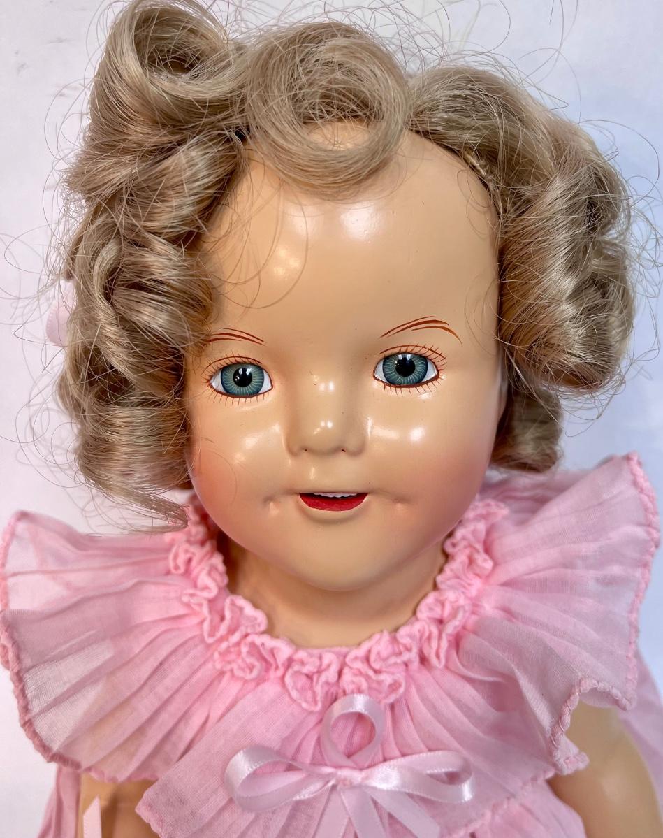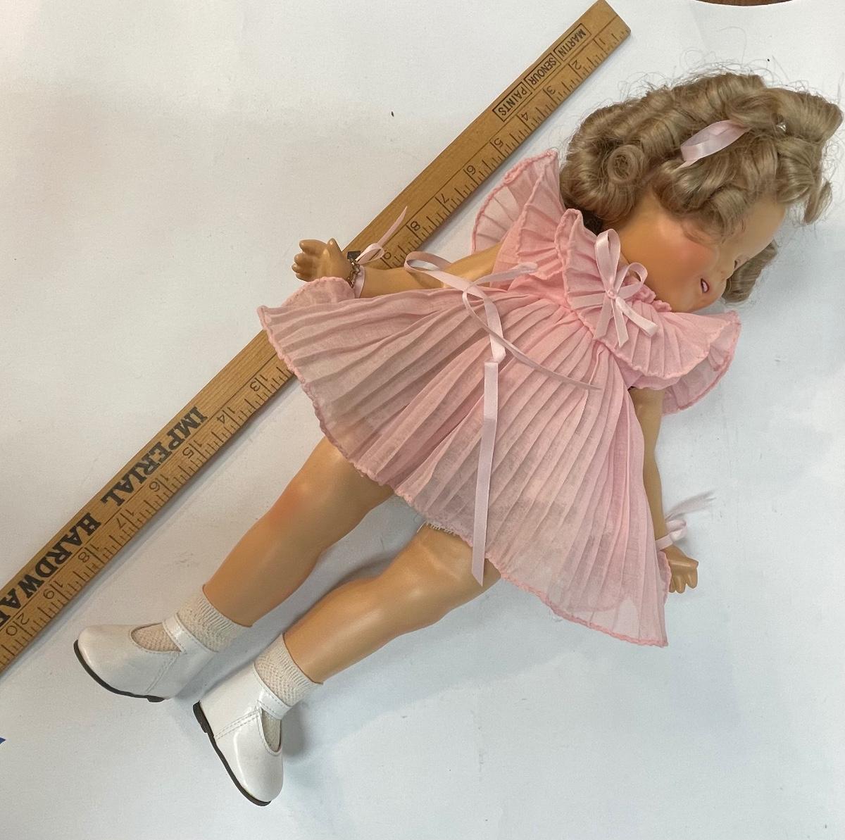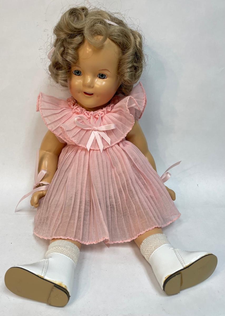 Shirley Temple doll approx 20” Composite Cottage Collectibles tag bracelet