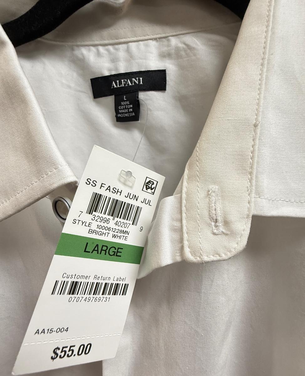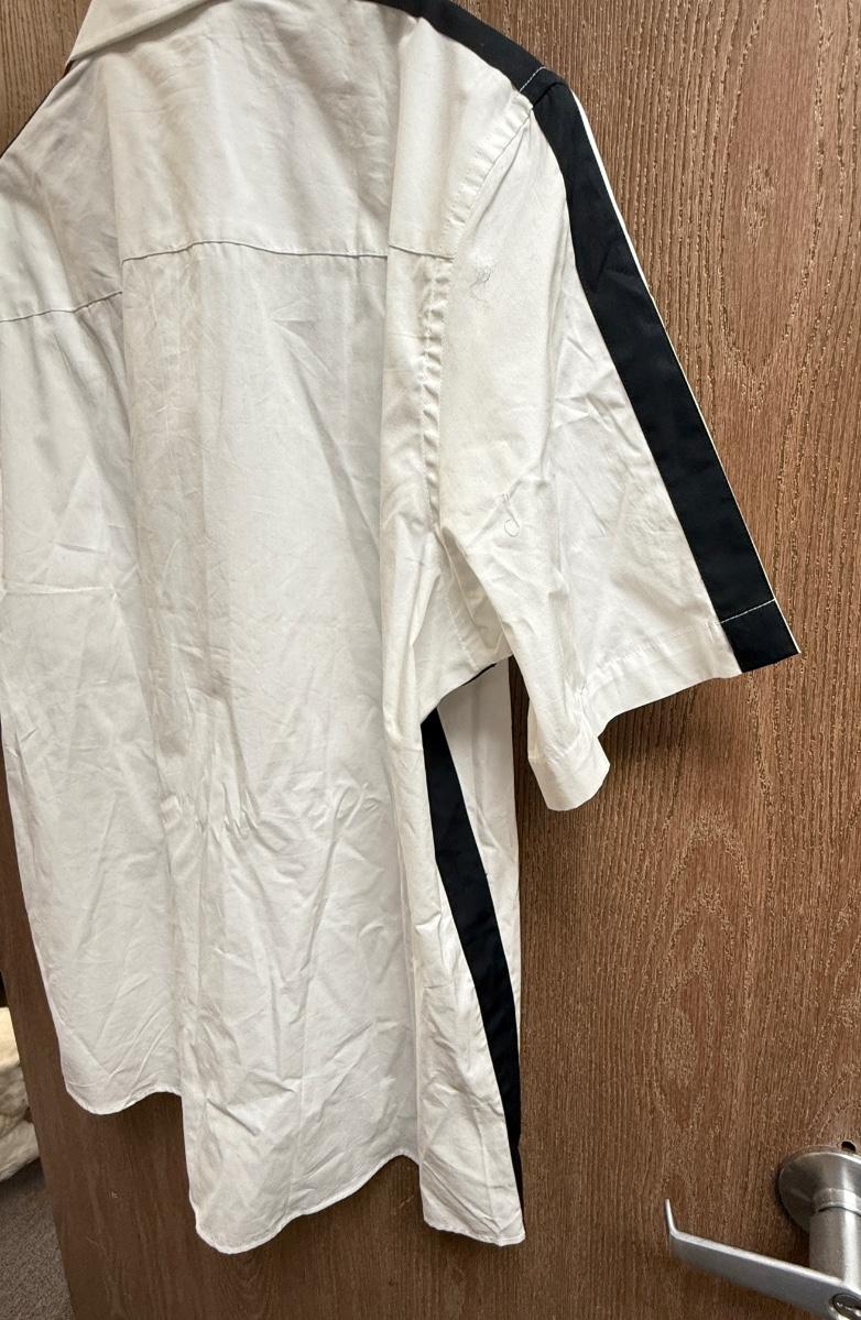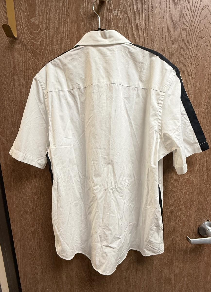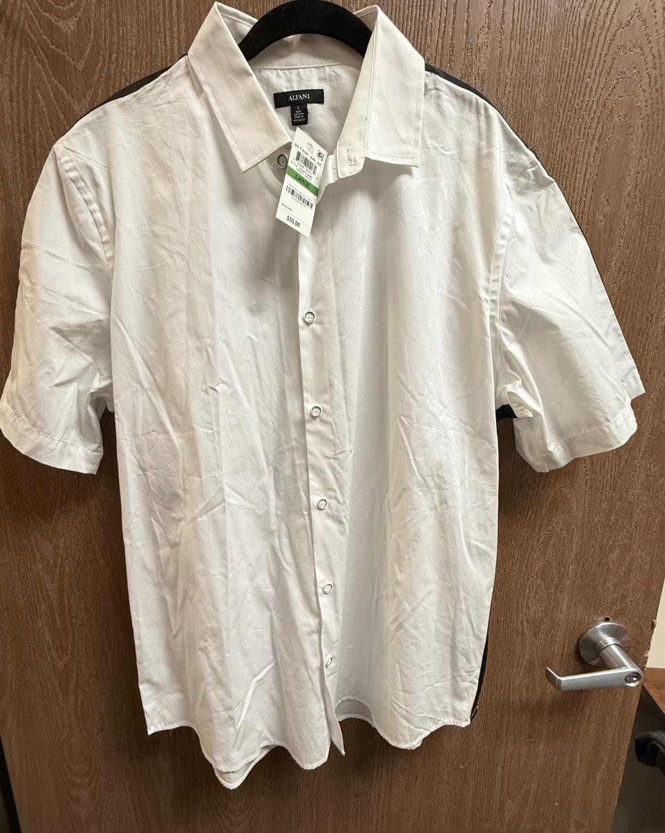 Alfani Men's Short Sleeve Button Up White Shirt with black side stripes