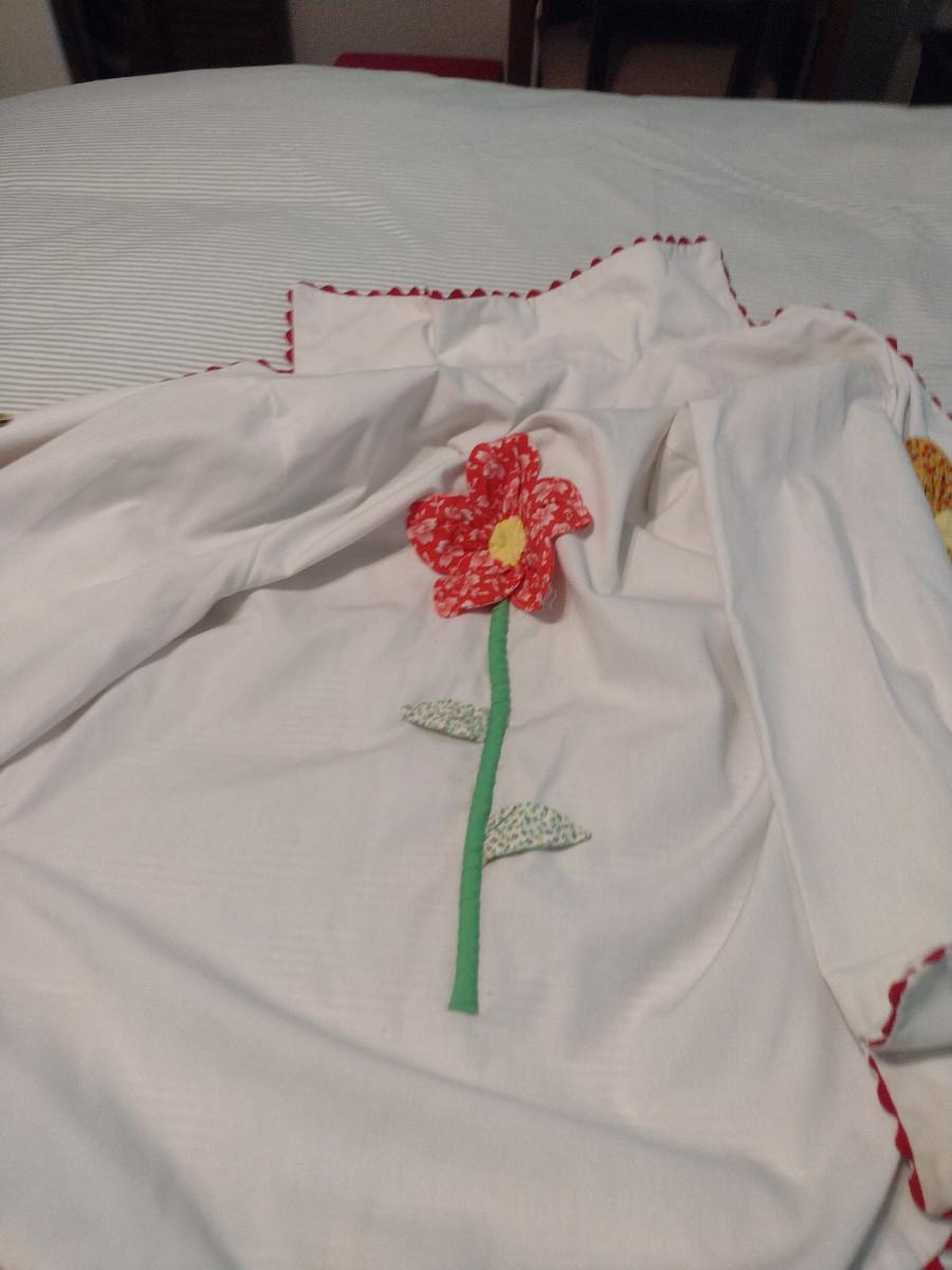 Shirt/Cover-up with Applique' Designs. Size unknown. Item does have some staining.