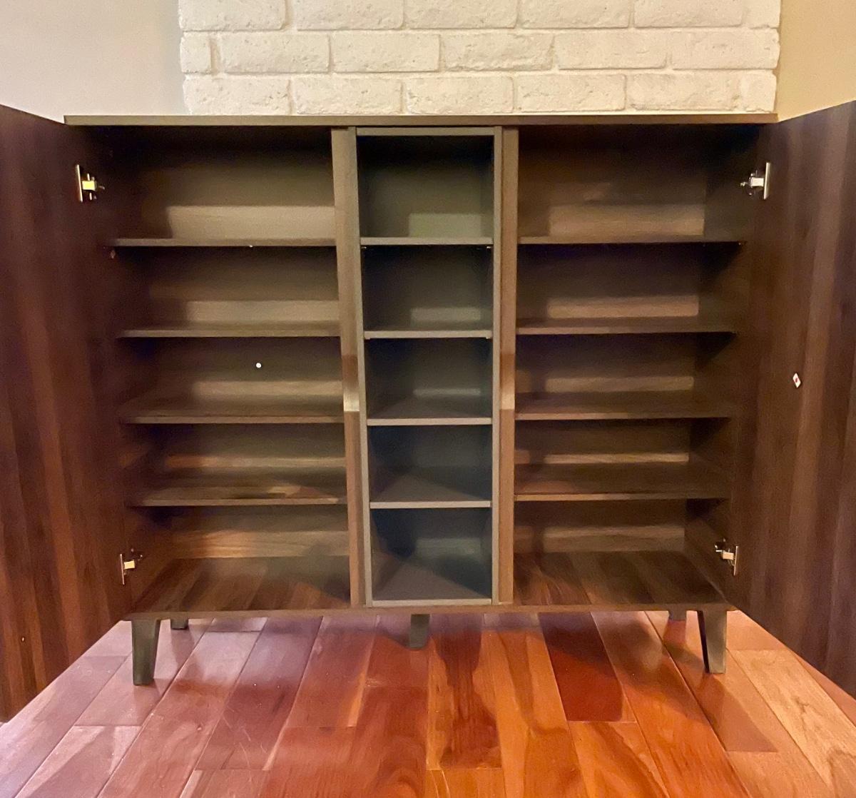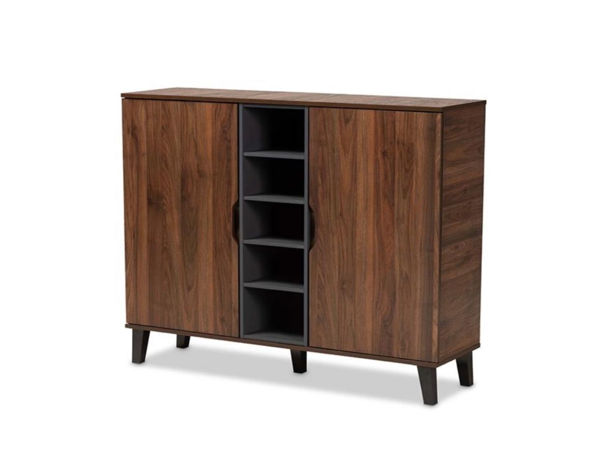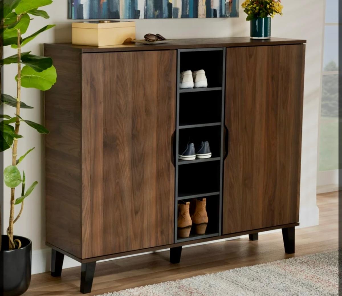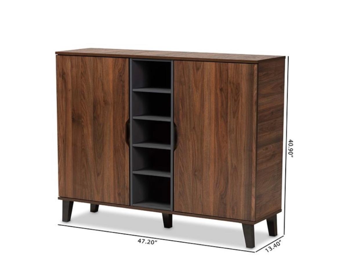 Two-Tone Walnut Brown and Grey Finished Wood 2-Door Shoe Cabinet