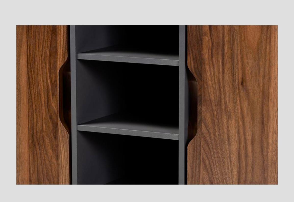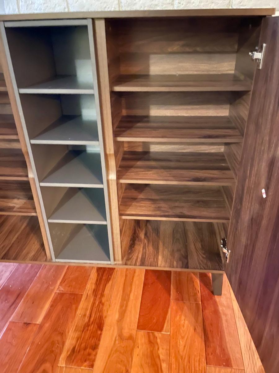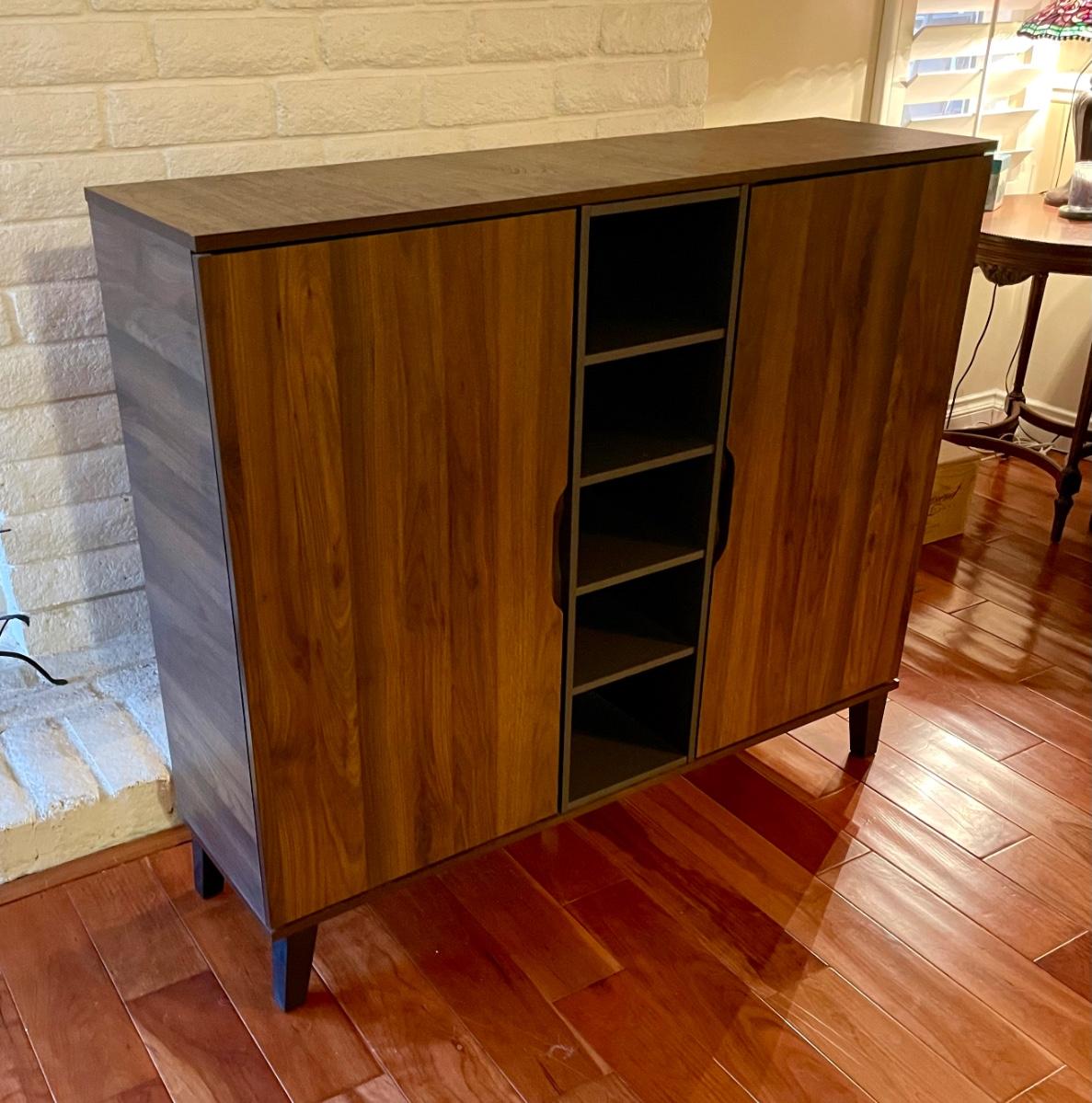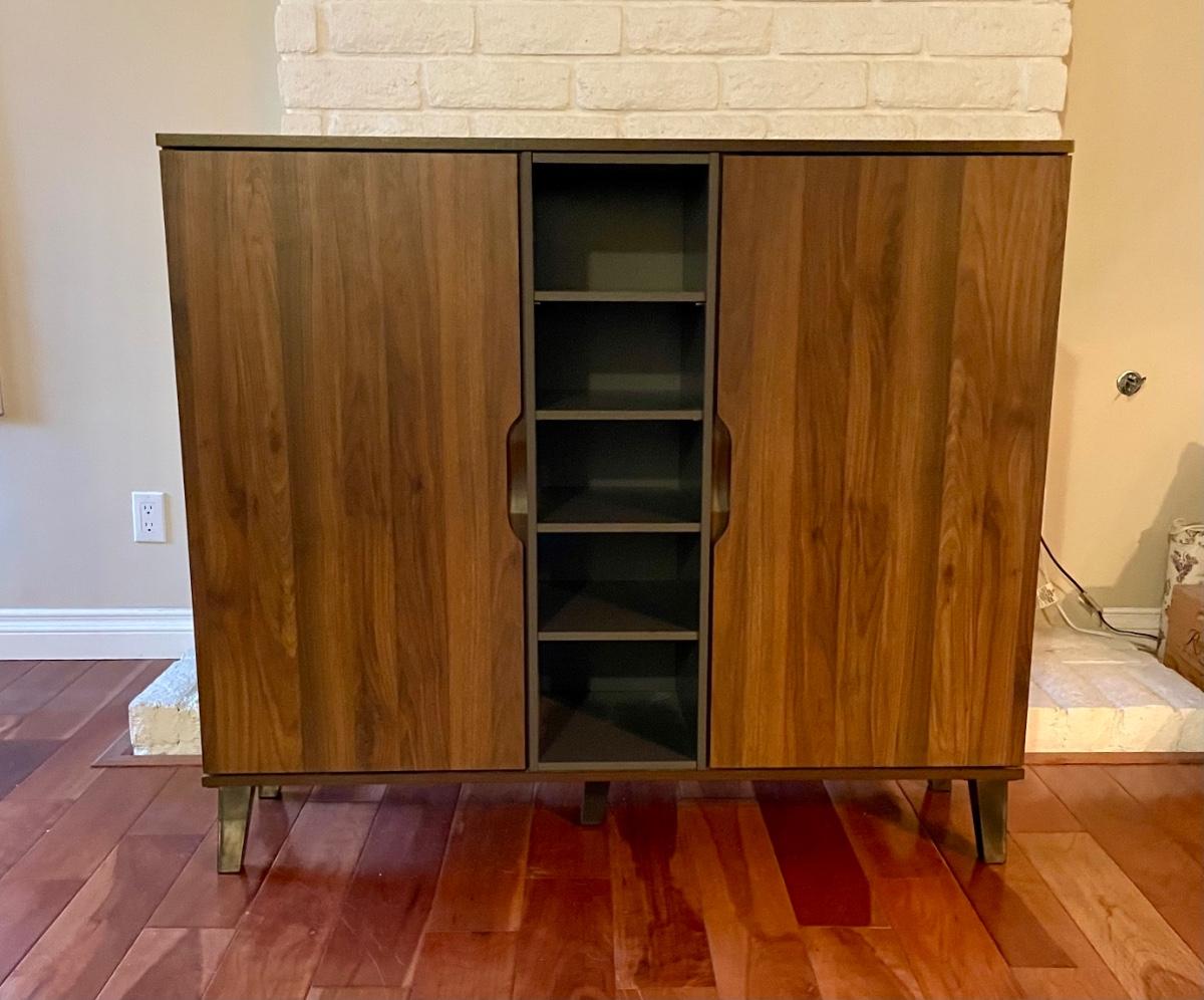 Two-Tone Walnut Brown and Grey Finished Wood 2-Door Shoe Cabinet