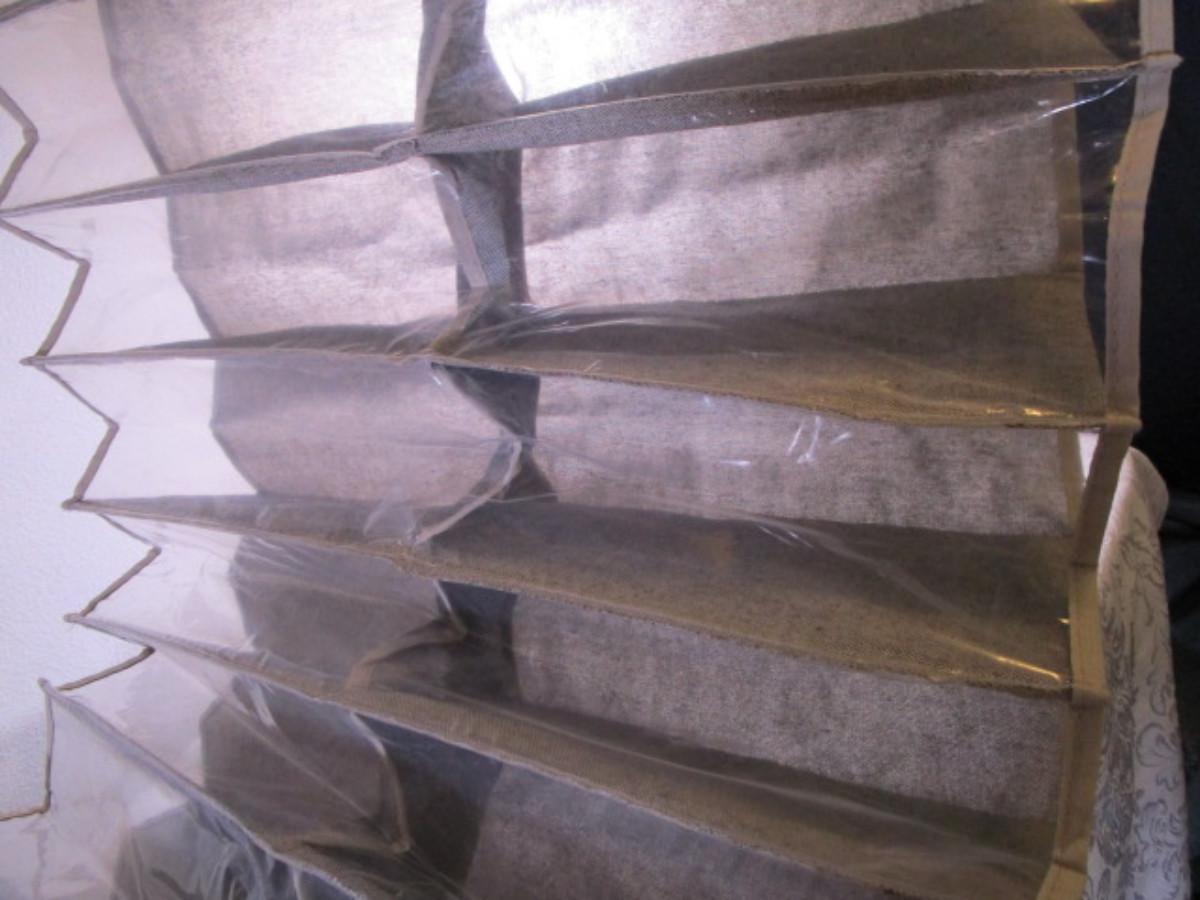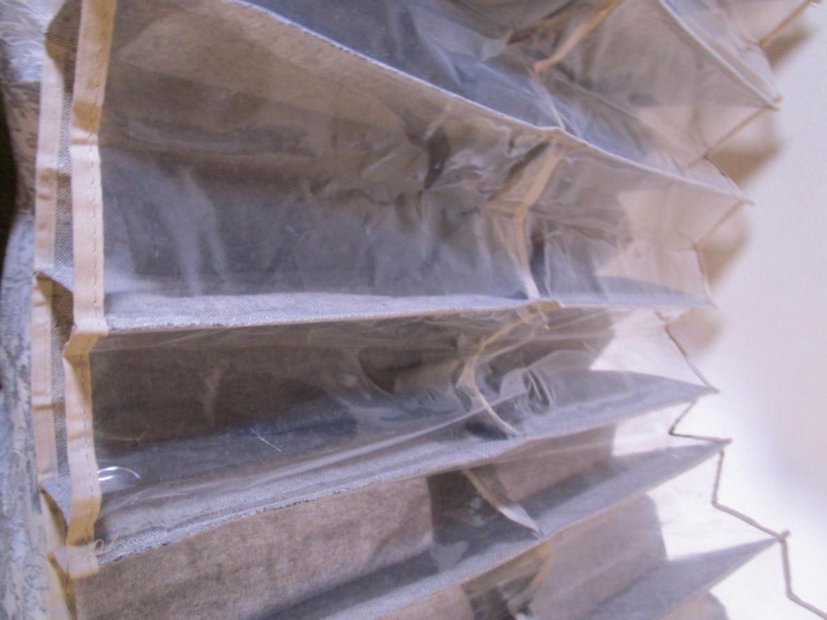 holds 12-24 pair of shoes (depends upon shoe size), hangs over the door