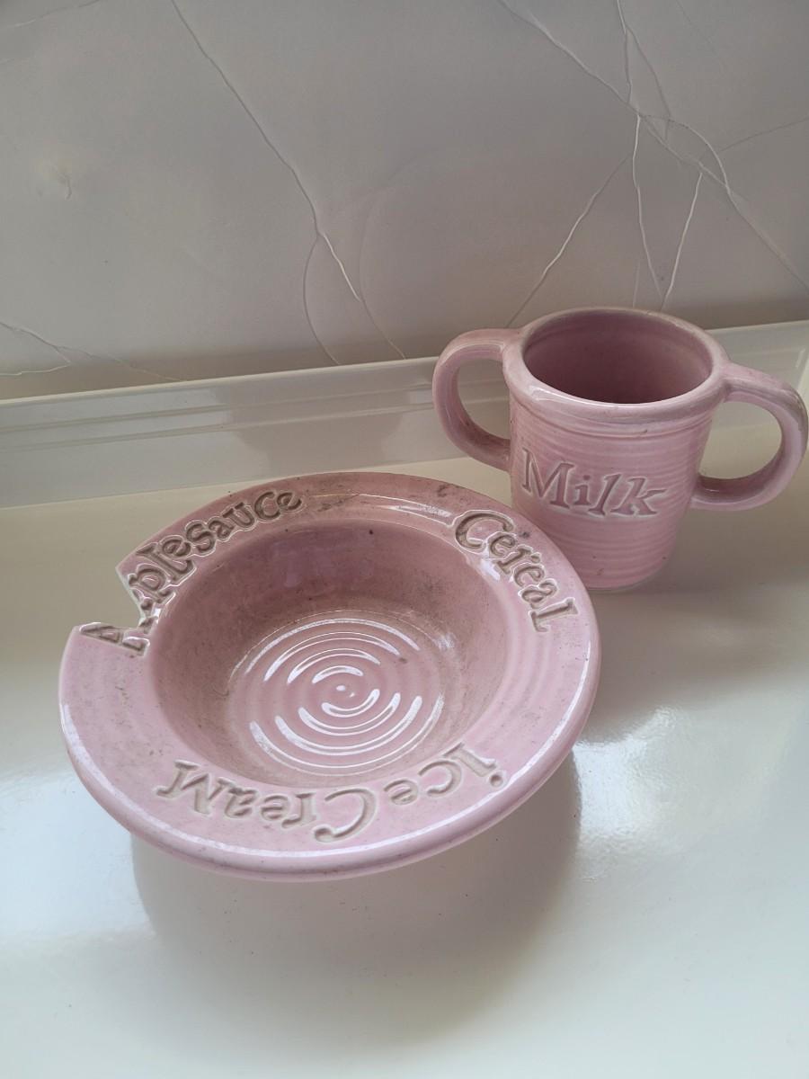 Vintage Milk & Cereal Set Bowl and Mug- pink