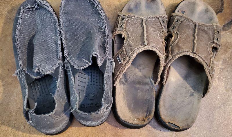 Shoe Lot 3 (Includes: Brown Hemp Slip-On Sandals Men's Size 10 1/2, Gray Canvass Crocs Men's Size 10 1/2)
