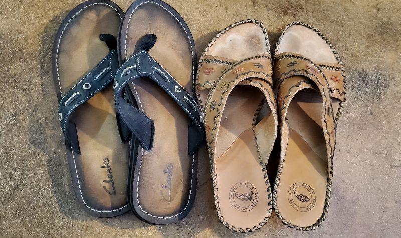 Shoe Lot 4 (Includes: Black and Brown Clark's Thong Shoes Women's Size 8, Brown Leather Nurture Slip-On Kitten Heels Women's Size 8)