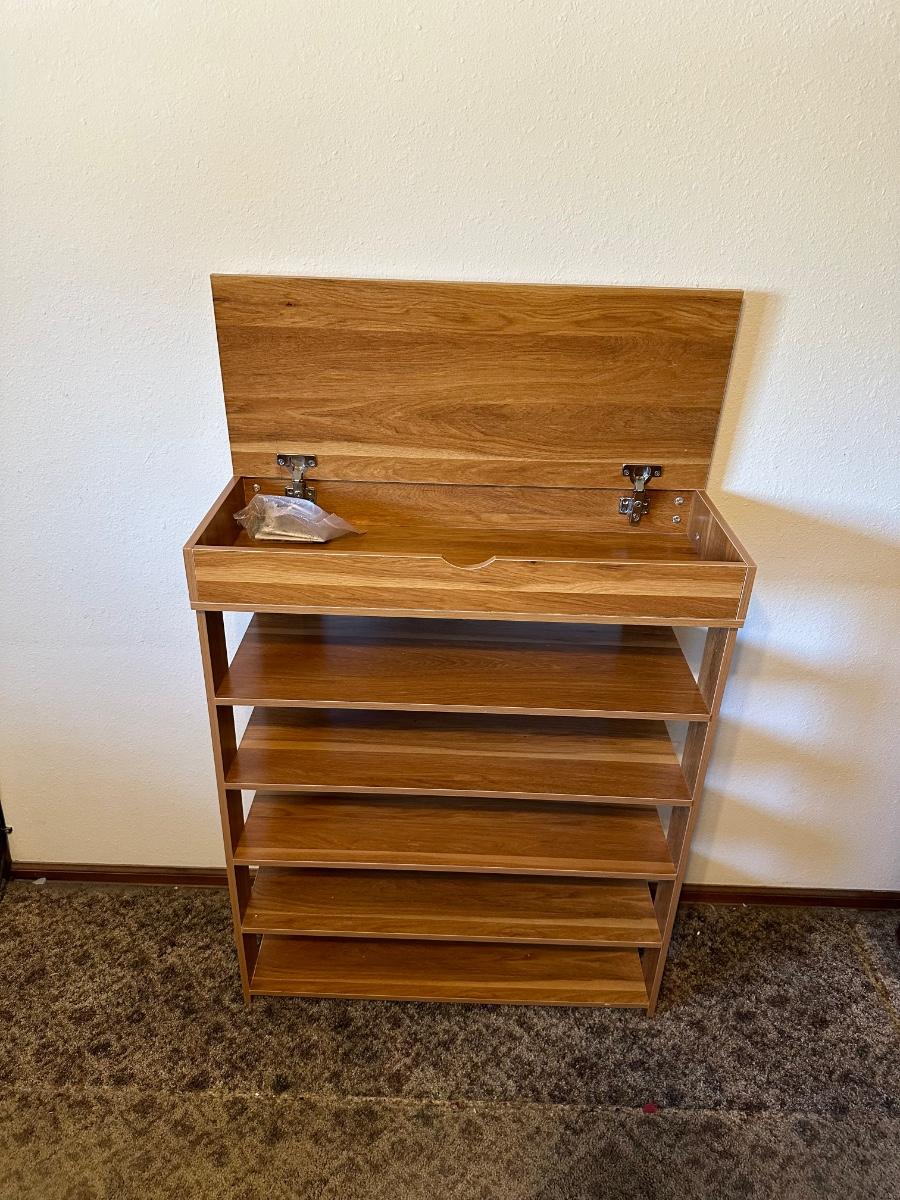 SHOE RACK WITH HINGED LID CHEST ON THE TOP