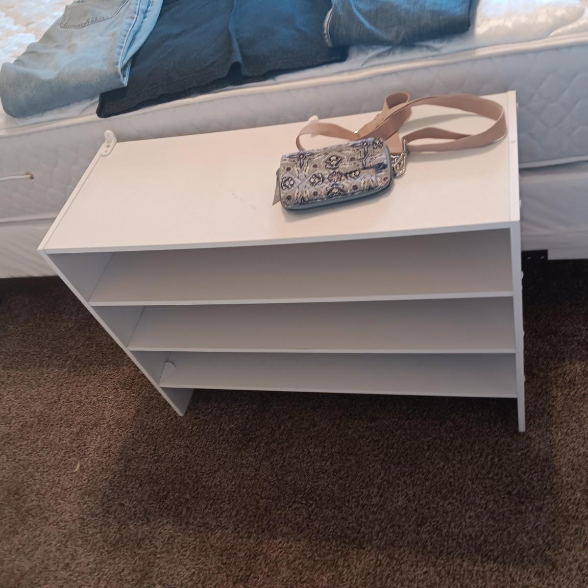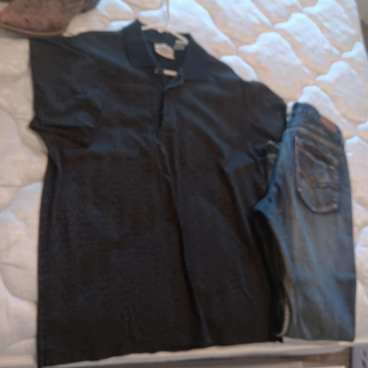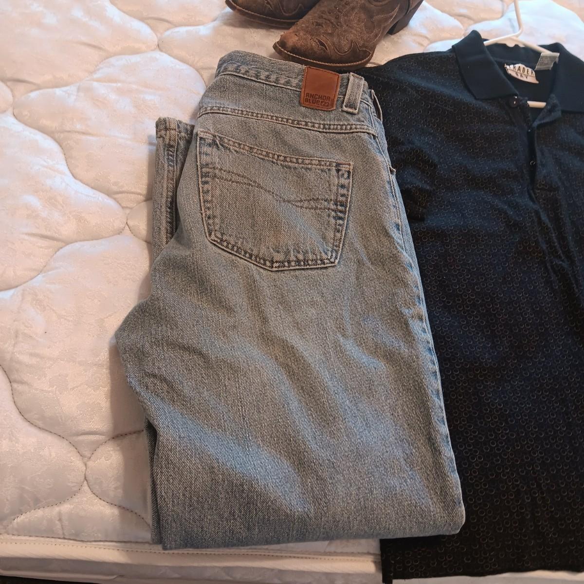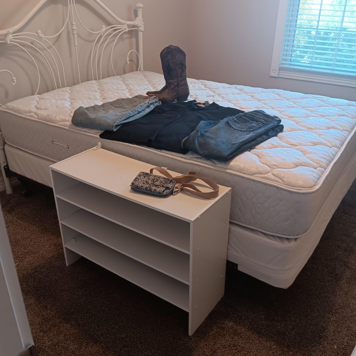 SHOE SHELF, VERA BRADLEY WALLET, MEN'S JEANS, SHIRT AND LADIES BOOTS