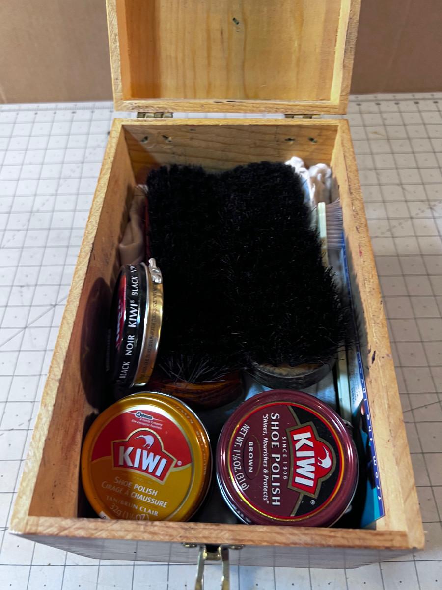 Shoe Shine Box with Supplies Included