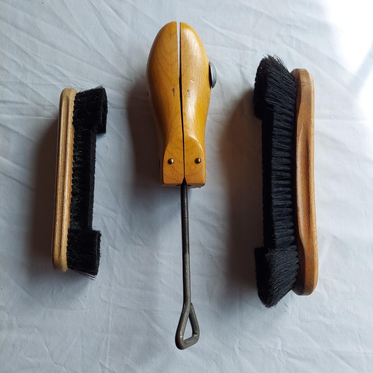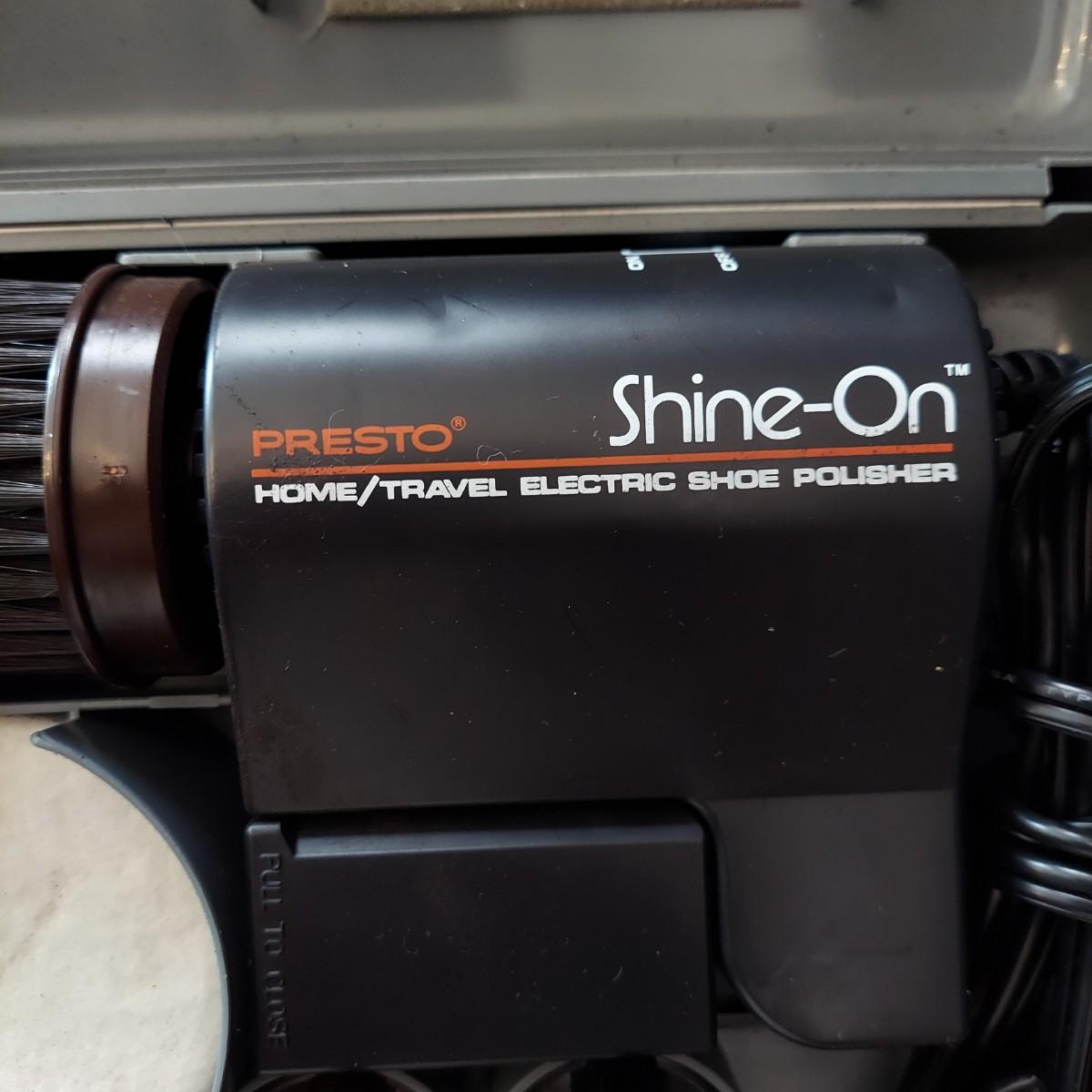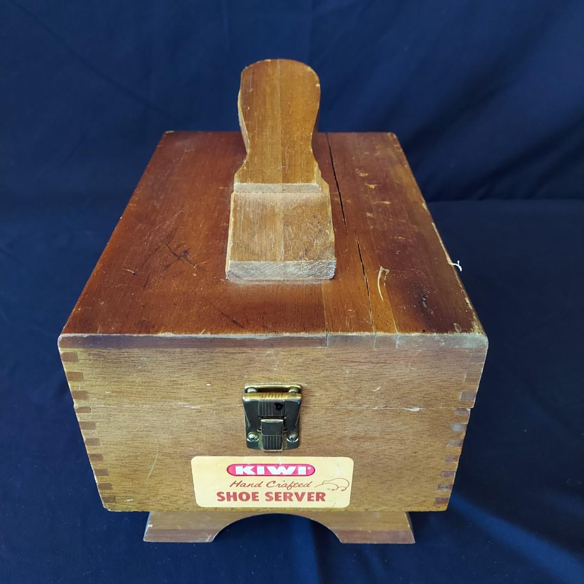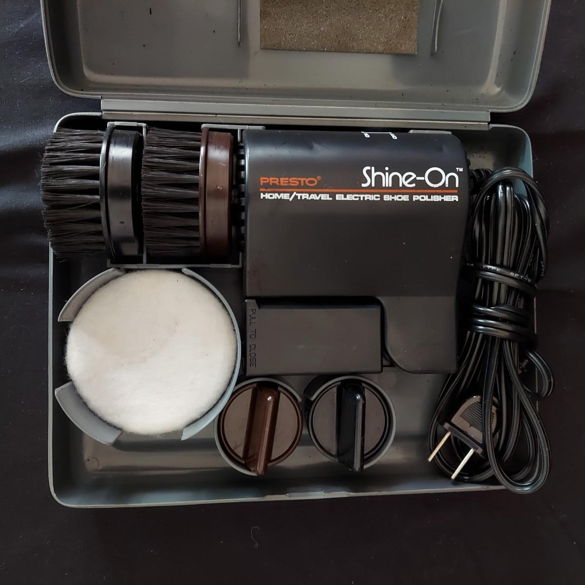 Wooden shoe shine kit and several boar bristle brushes. Also includes electronic shoe shine tool with attachments and other items. This piece was plugged in and turned on. Shipping available. Shipping can be costly. We suggest contacting our preferred local shipping provider, Postage Express, with dimensions and getting an estimate before bidding: (828) 670-5501or postageexpress@yahoo.com.