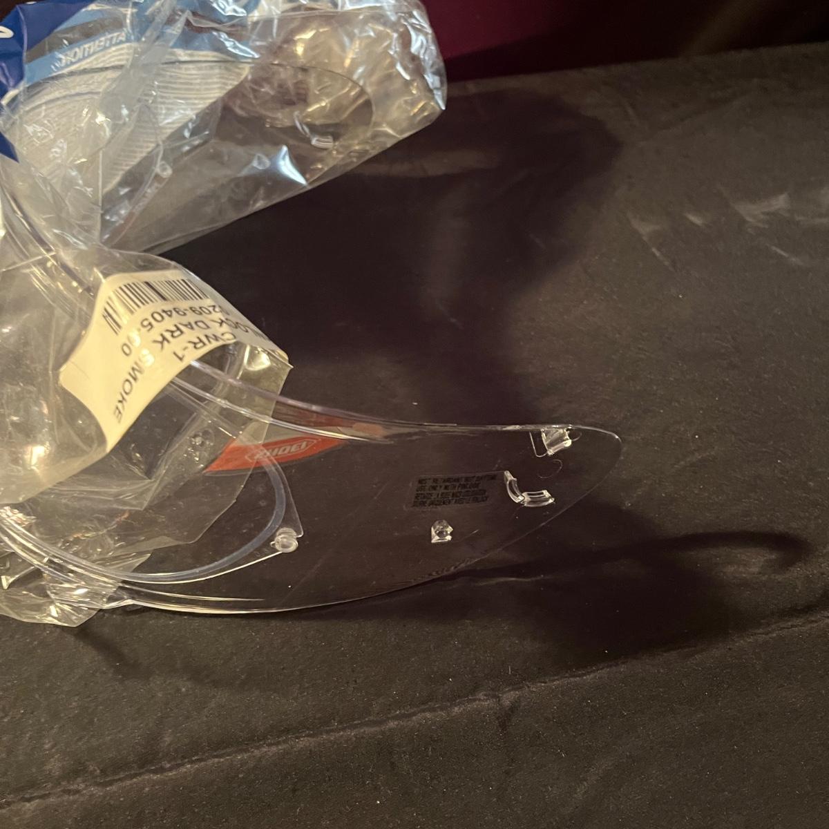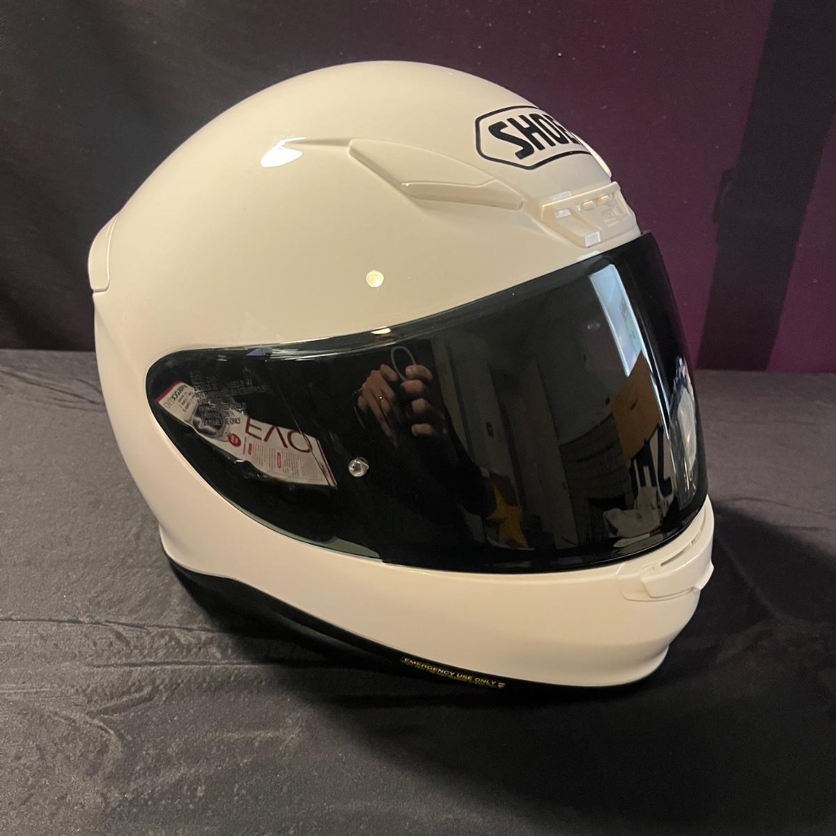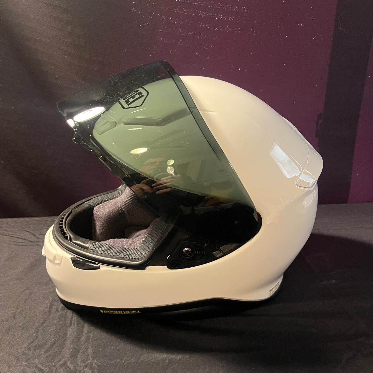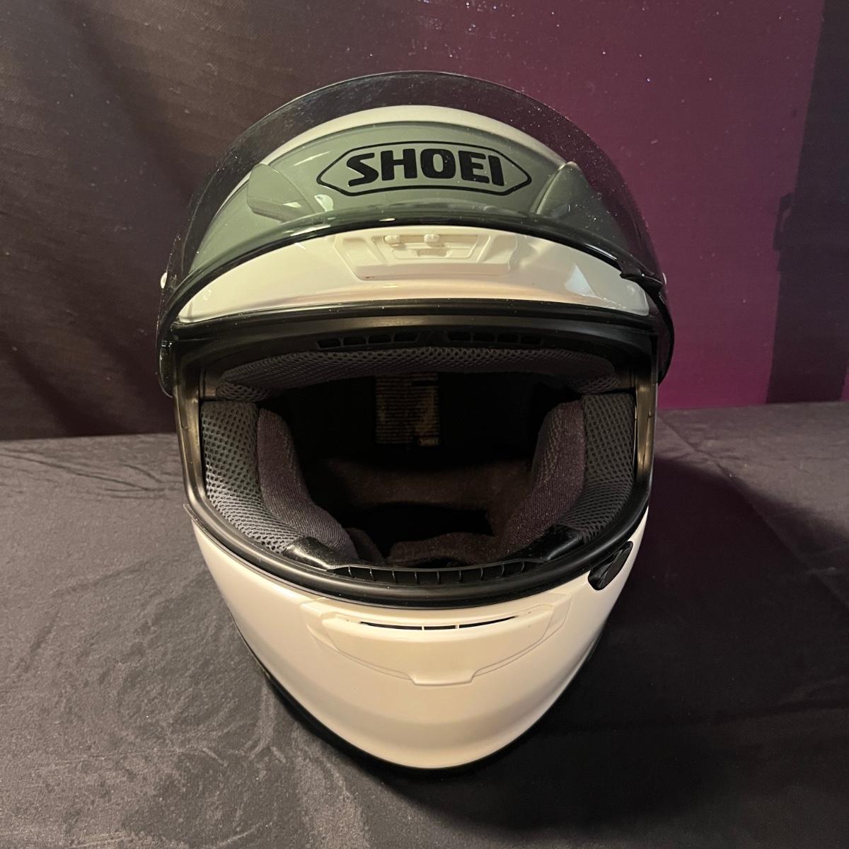 Lot includes a Shoei helmet model RF-1200 with with extra clear shield, bag and owners manual. Helmet size is 7 1/8-7 1/4.