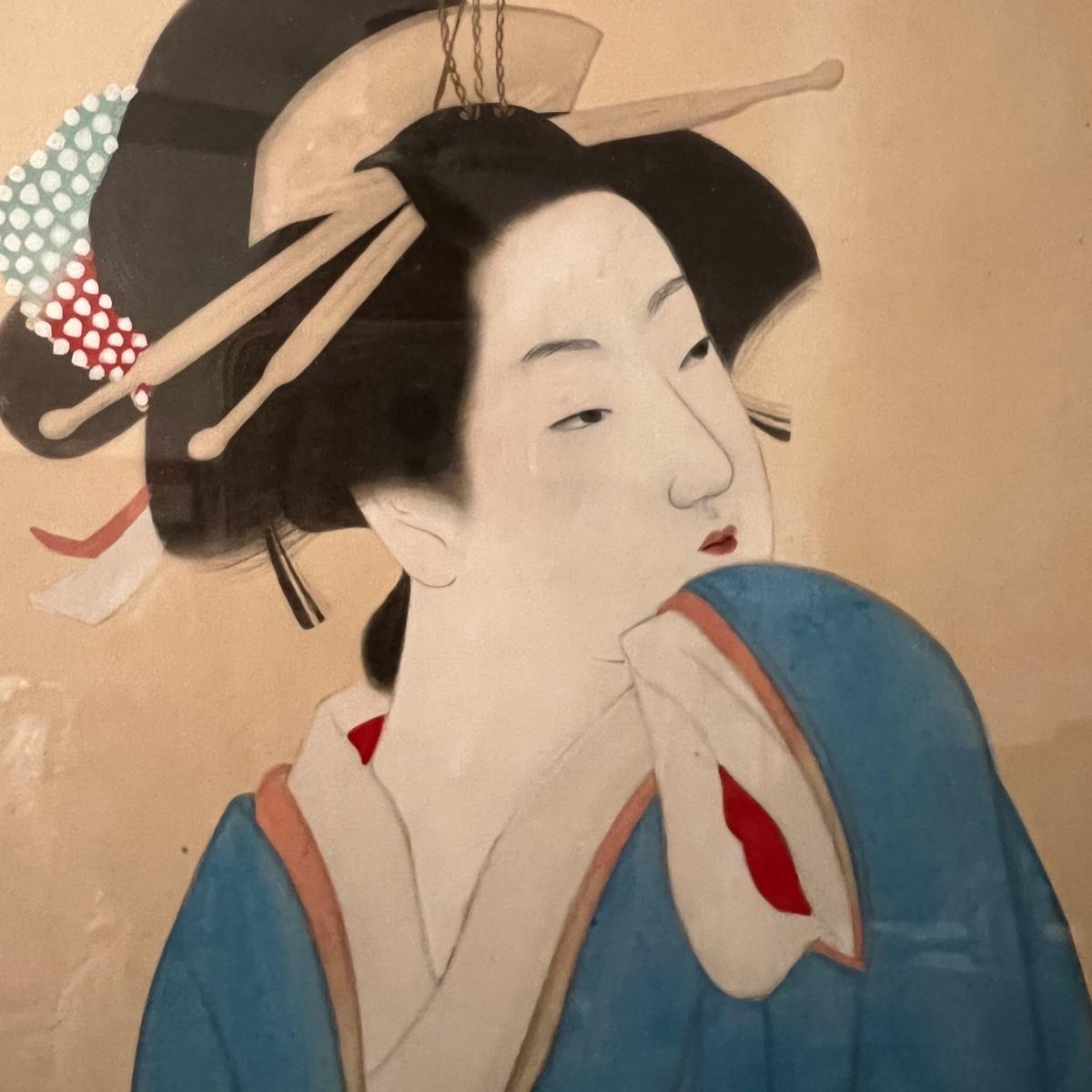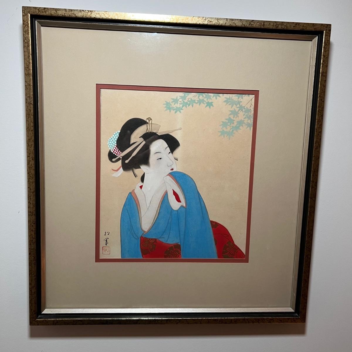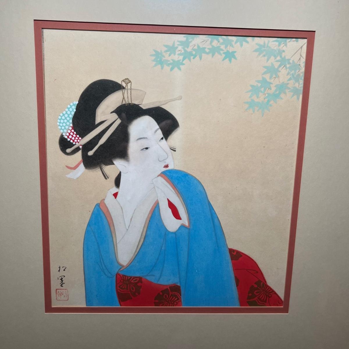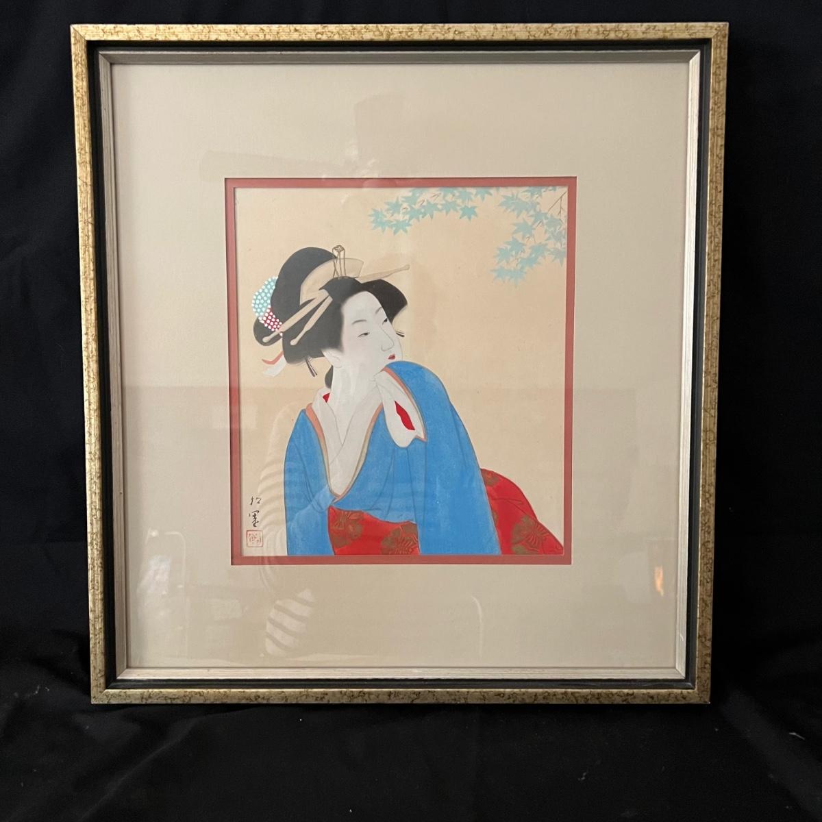 A Shoen Uemura print “Beauty and Maple Tree”. One of the Paintings of Beautiful Women collection. Frame measures 17.5” x 1.25” x 19”H. Shipping available.