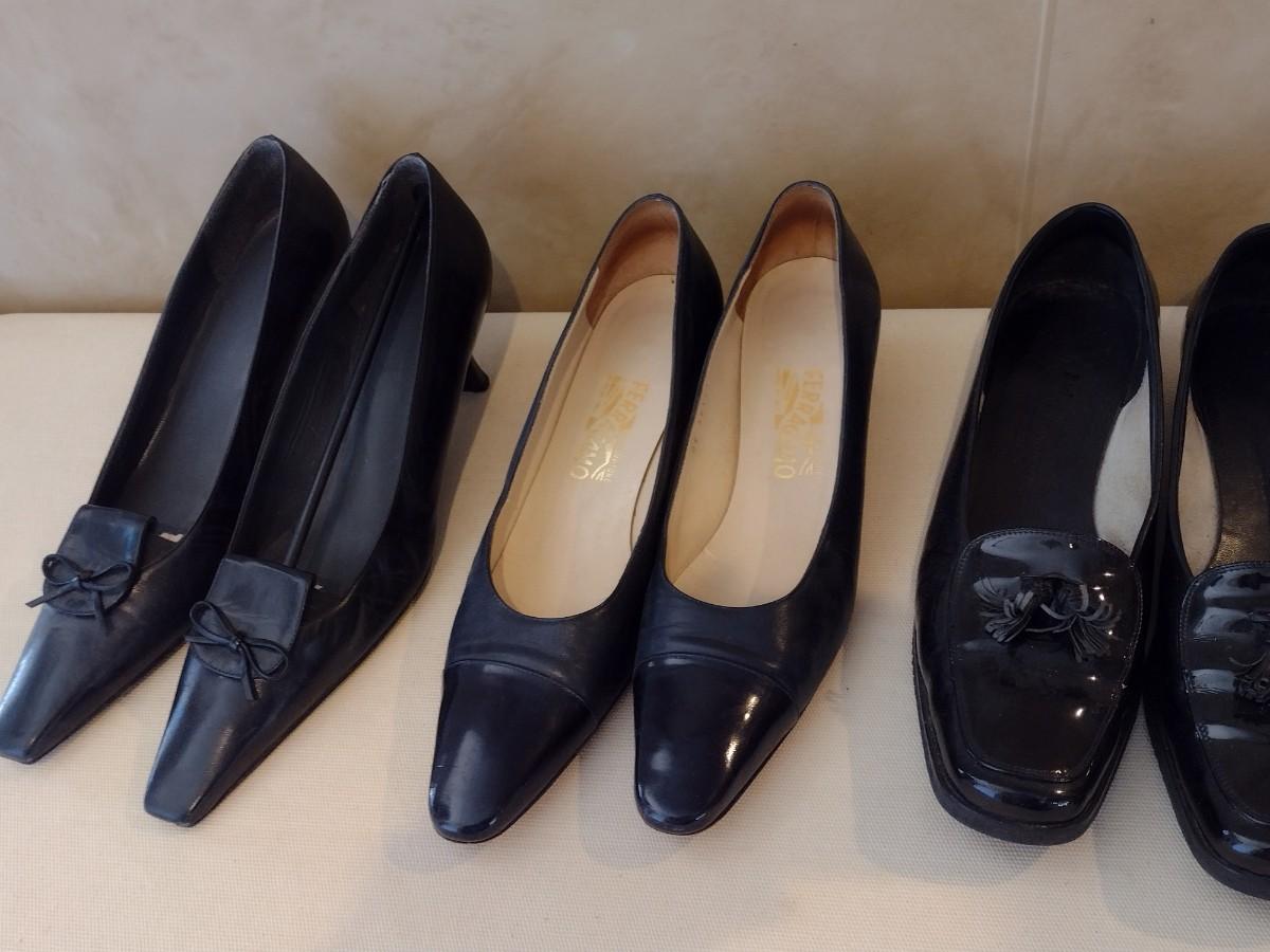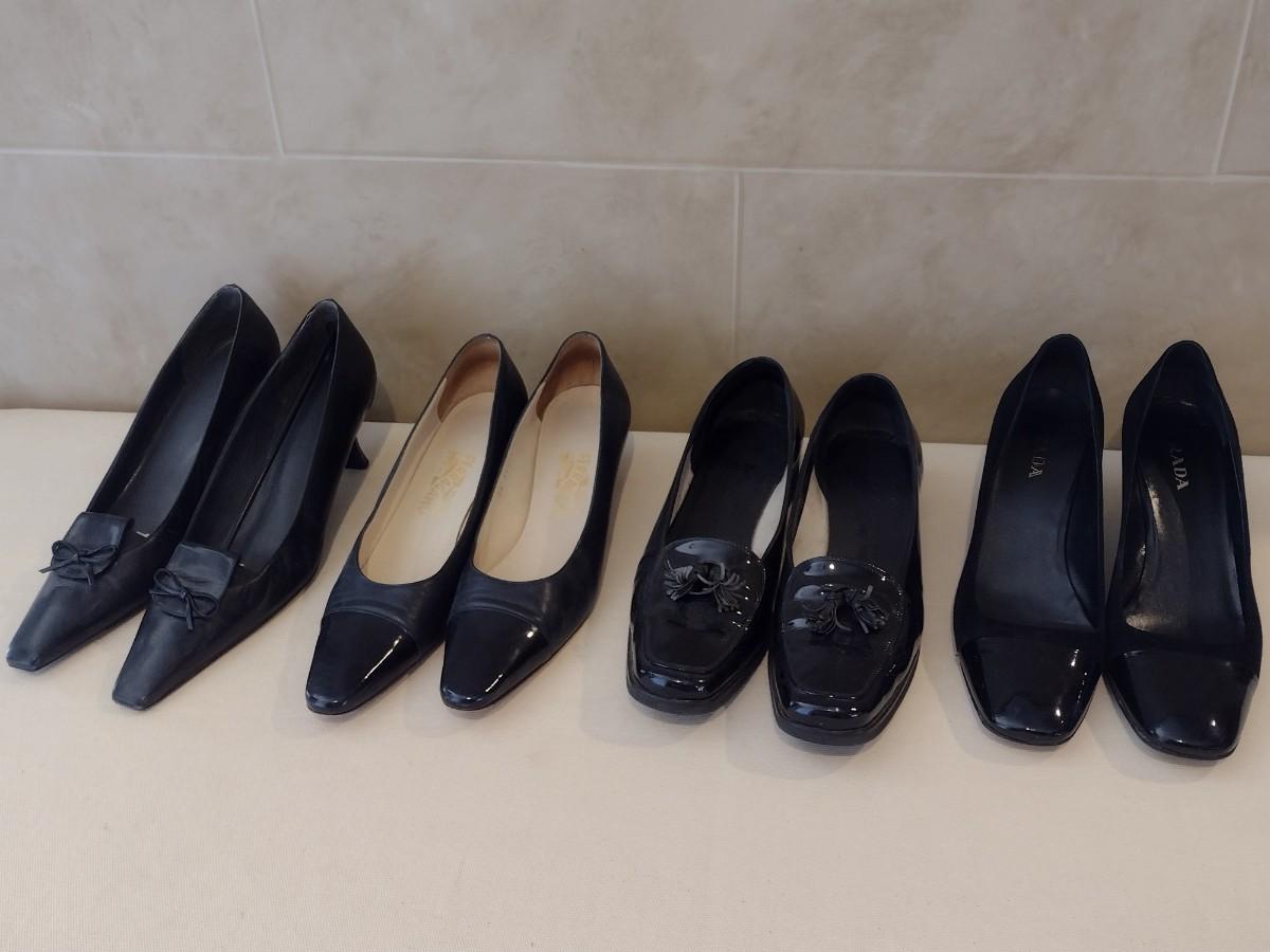 Set of Four Pair of Designer Shoes includes Prada and Ferragamo see all pictures for condition