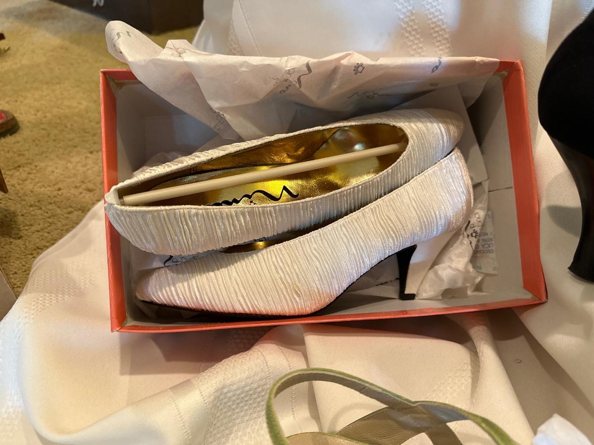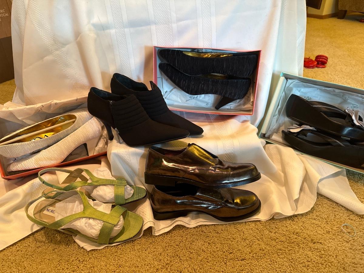Calvin Kleins 37.5, Nordstrom 8N, Nina white 8N, Nina Black 8N, Donald J Pilner wedge 7.5m, Donal J Pilner heel 7.5m