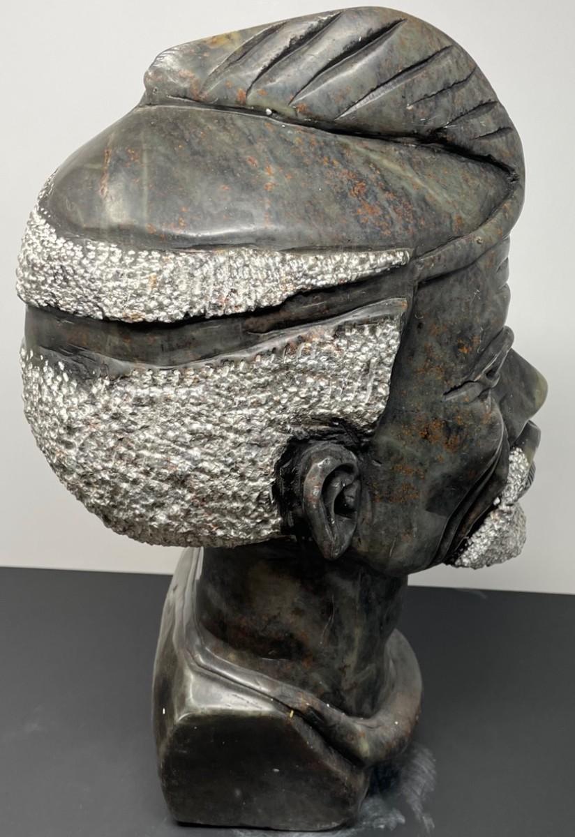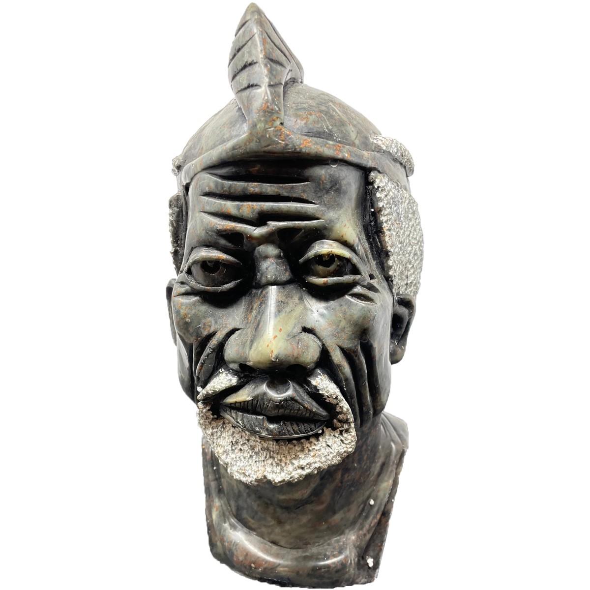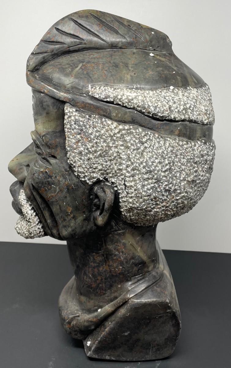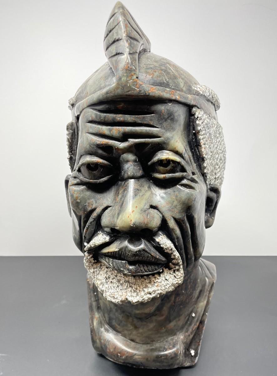 Description: SHONA SCULPTURE/ THE CHIEF, ZIMBABWE TRIBE AFRICAN ART. Measurement approximate: 15 H X 9 W Inches. Material: Carved stone