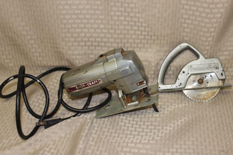 Shop Craft Jig Saw. Works. Does have a little wear to the cord, but no exposed wire. Cummins circular saw drill attachment.