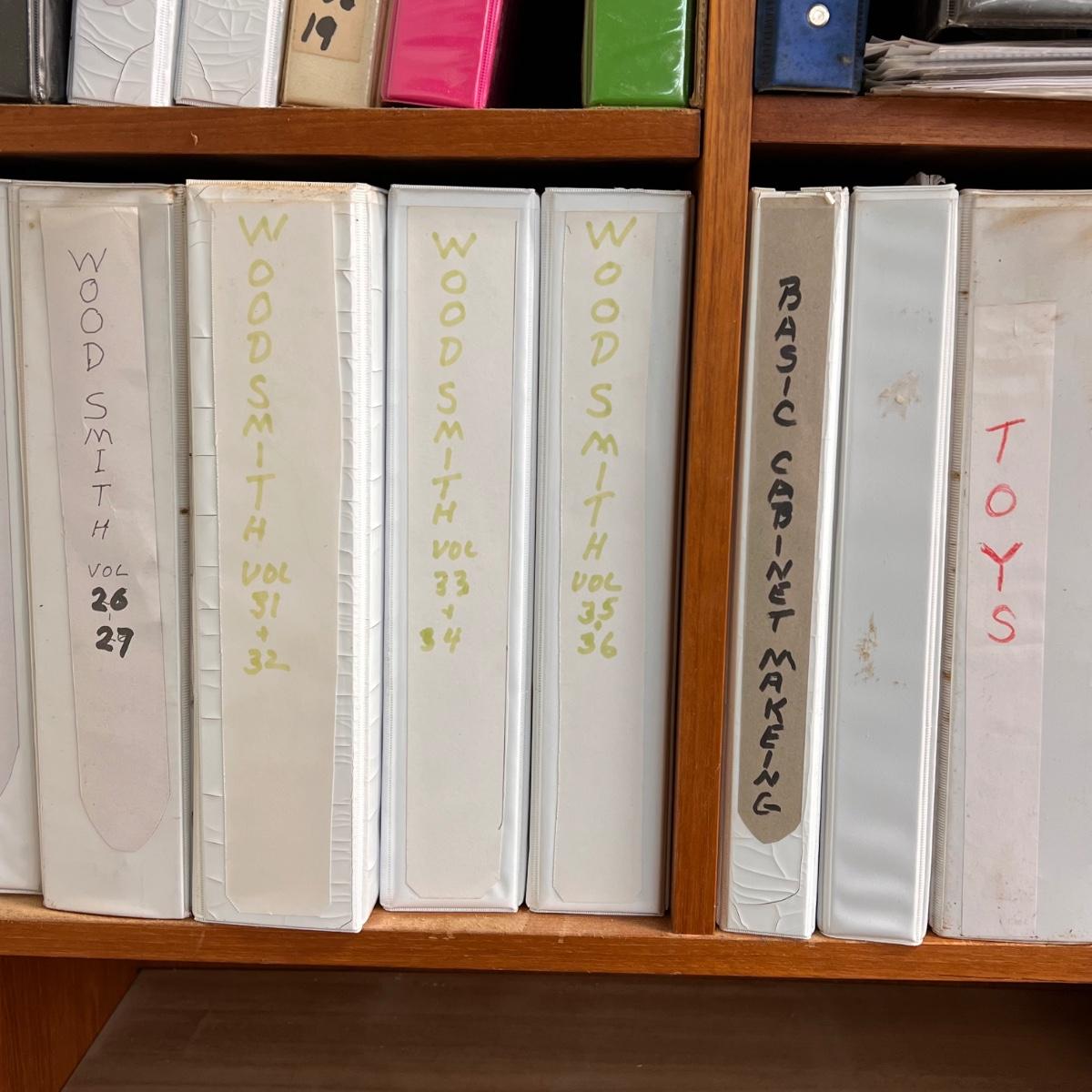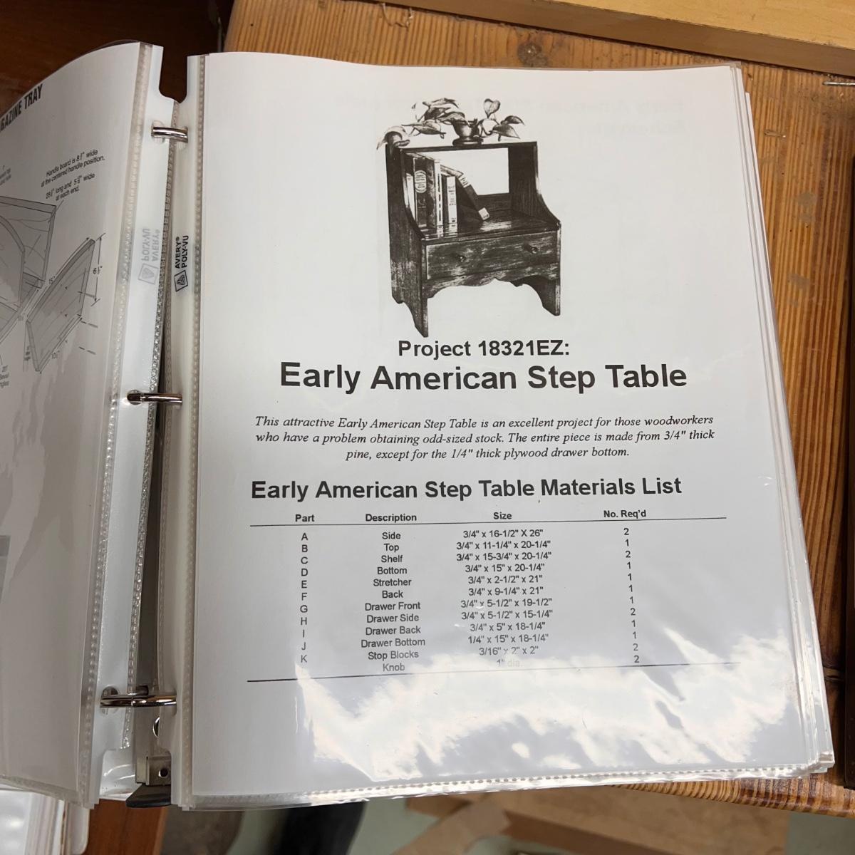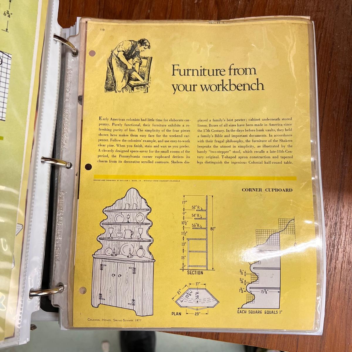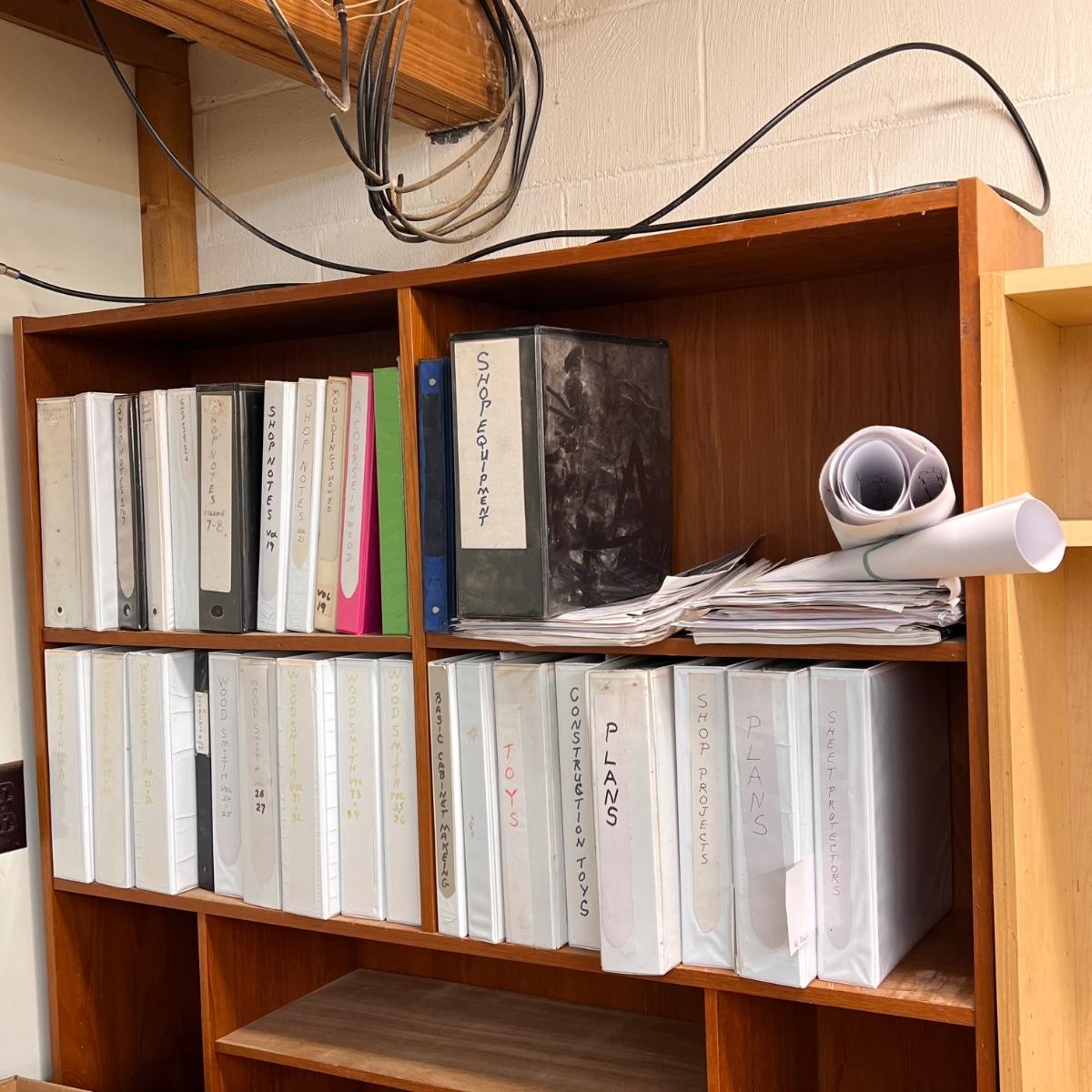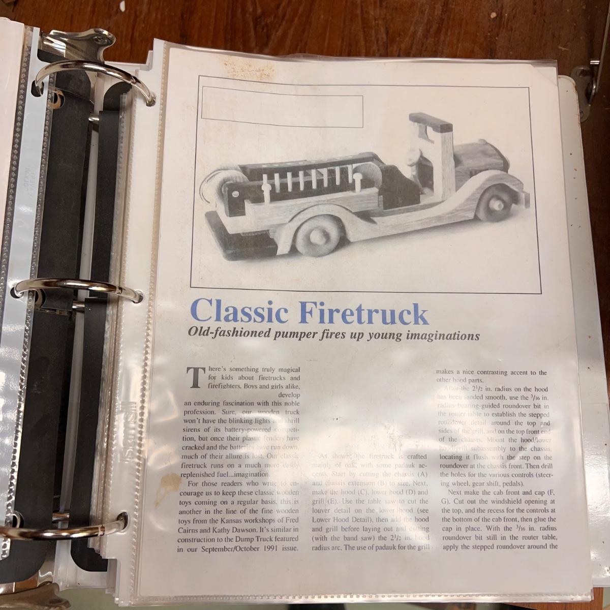 This lot includes several shop plans in several binders. There are “how to’s” from dovetailing to classic fire trucks. Shipping available.