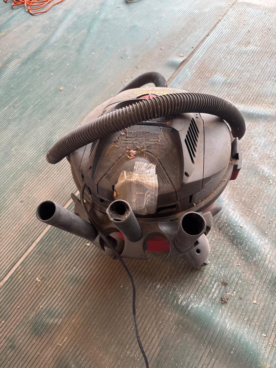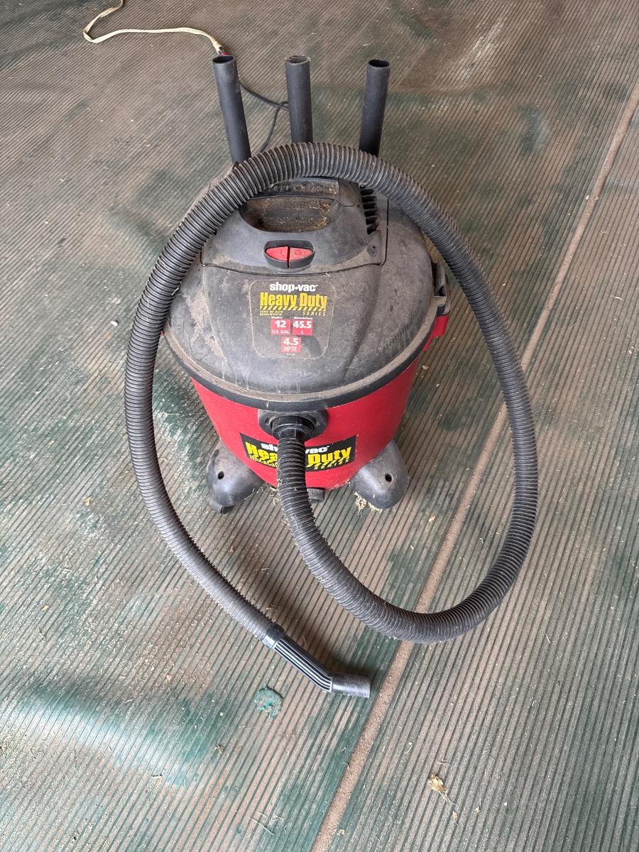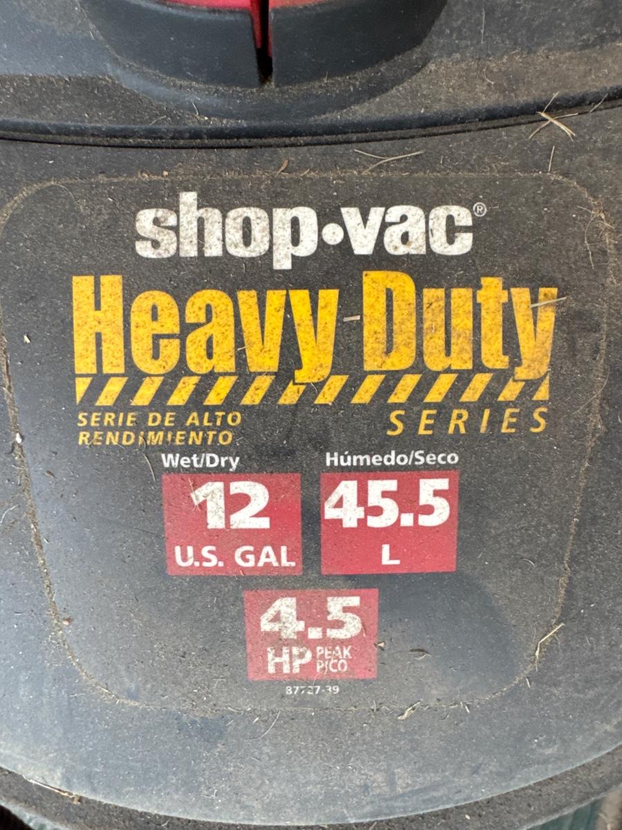 12 gallon 4 1/2 hp heavy duty shot back test tested and it works. It has tape on the exhaust port, but still works.