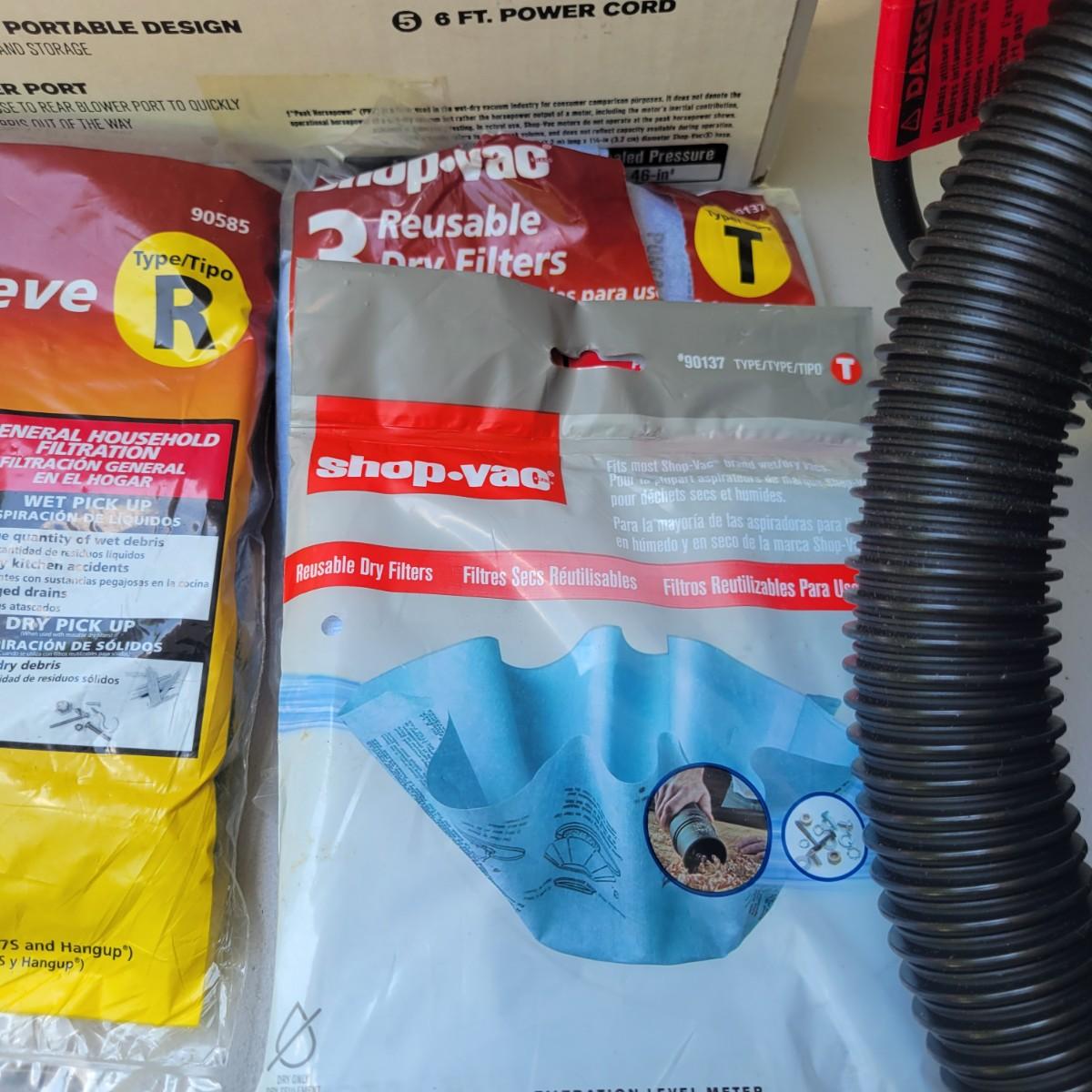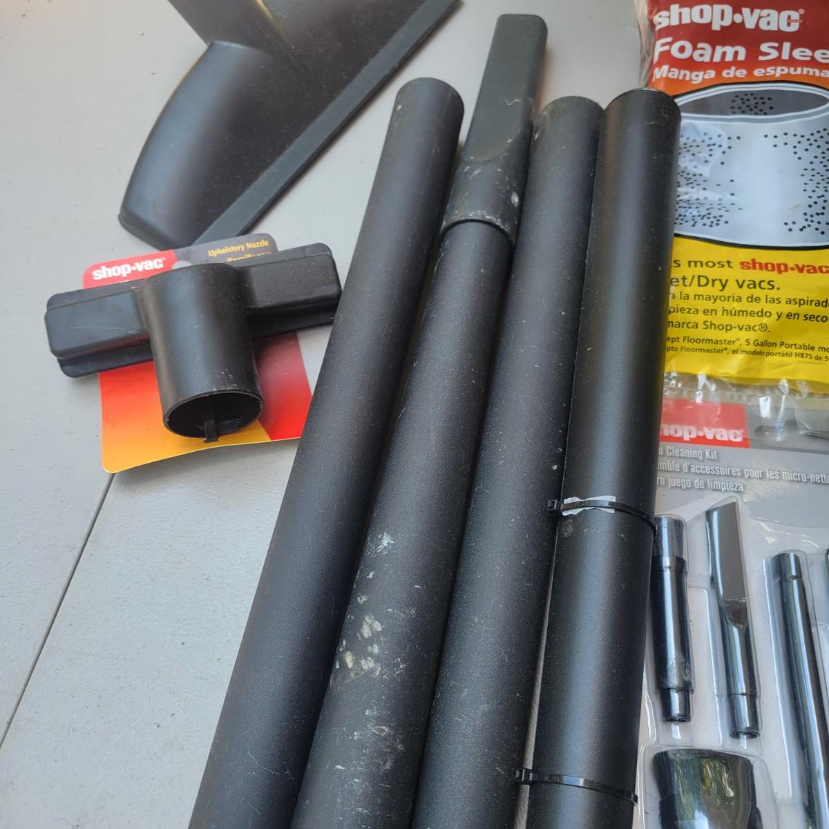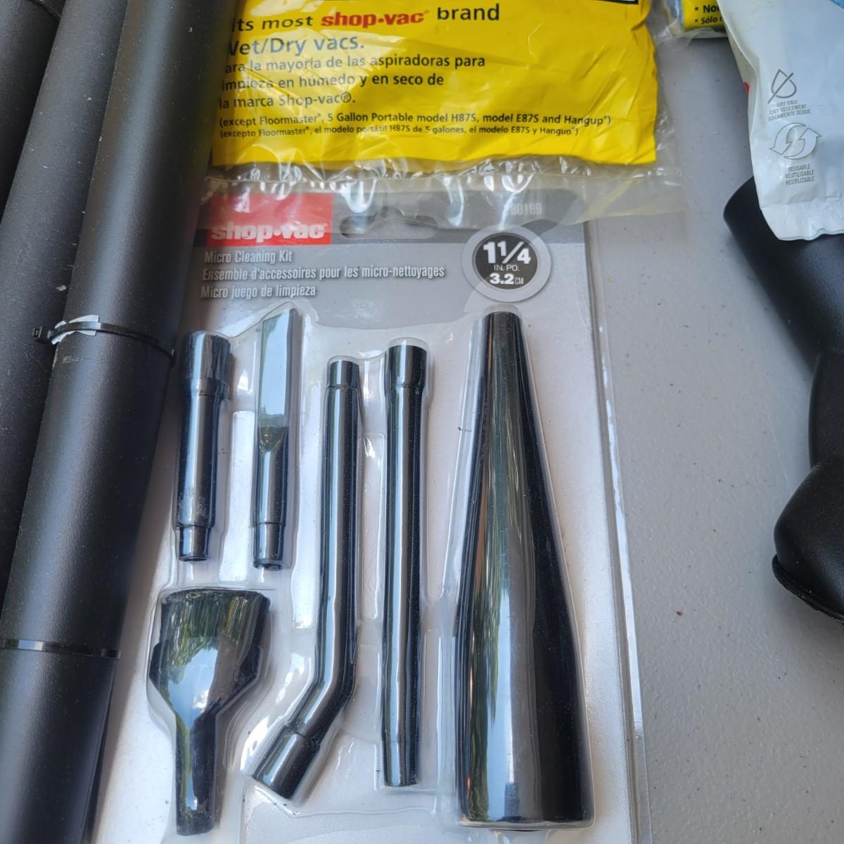 1.5 gal, 2hp Shop Vac in New condition. Includes many Shop vac brand accessories. Extra filters, foam sleeve, micro cleaning kit and more. Local pickup only