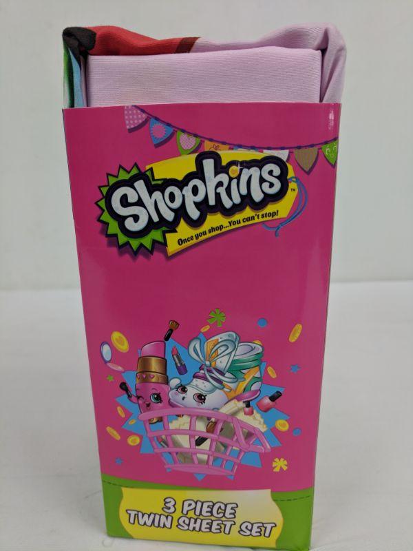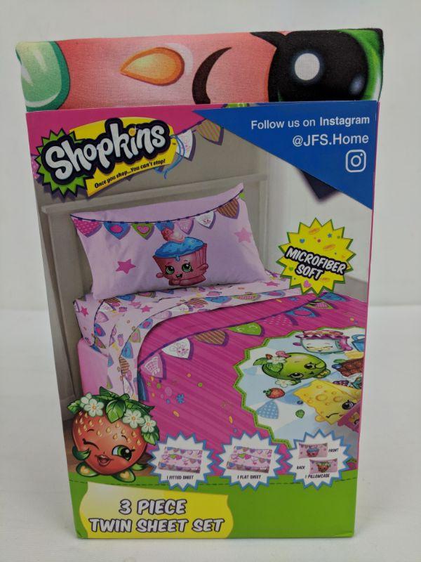 Shopkins 3PC Twin Sheet Set, 1 Fitted Sheet/1 Flat Sheet/1 Pillowcase - New