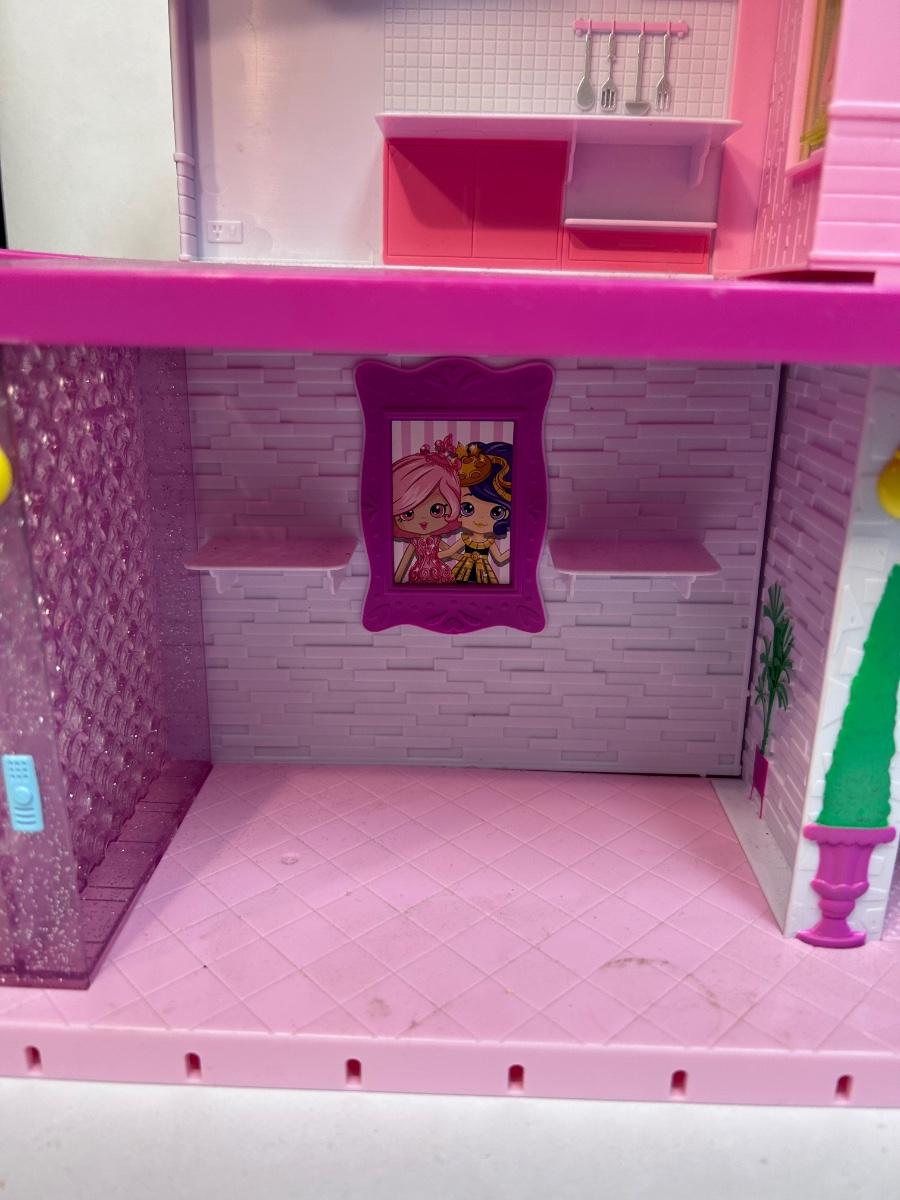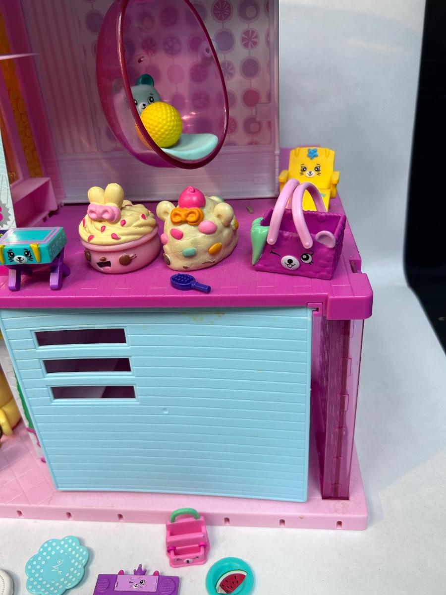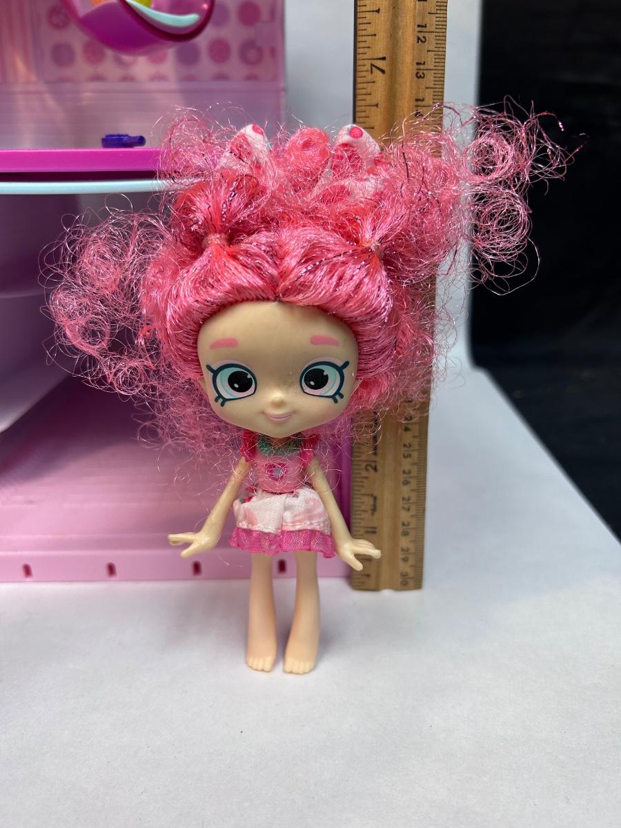 Shopkins Shoppies Doll with Happy Place Grand Mansion and Accessories. In previously played with condition. May be missing accessories or have pieces not original to this playset.
