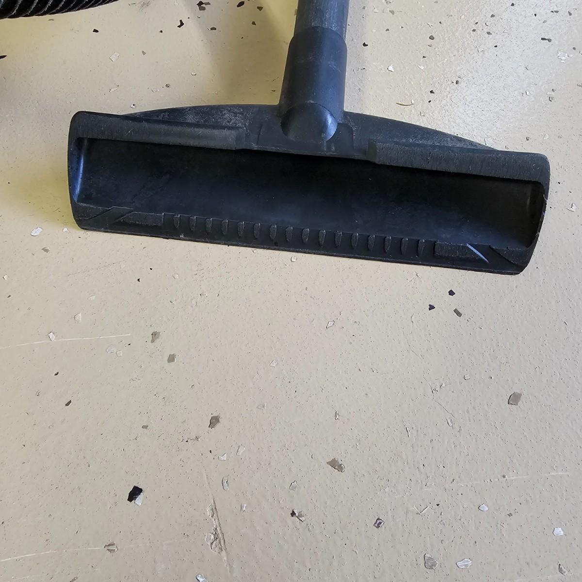Small size ShopVac brand vacuum and accessories. Unit has four caster wheels for ease of use, a six foot hose and three wand extensions, a brush and a floor pickup. Measures 16" x 18" x 17"H, powered on when plugged in. Includes manual. See photos for details. Local pickup only.