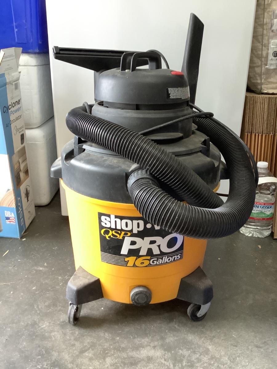 Shop*Vac Pro 16 gallon with extra attachments and holder on vacuum