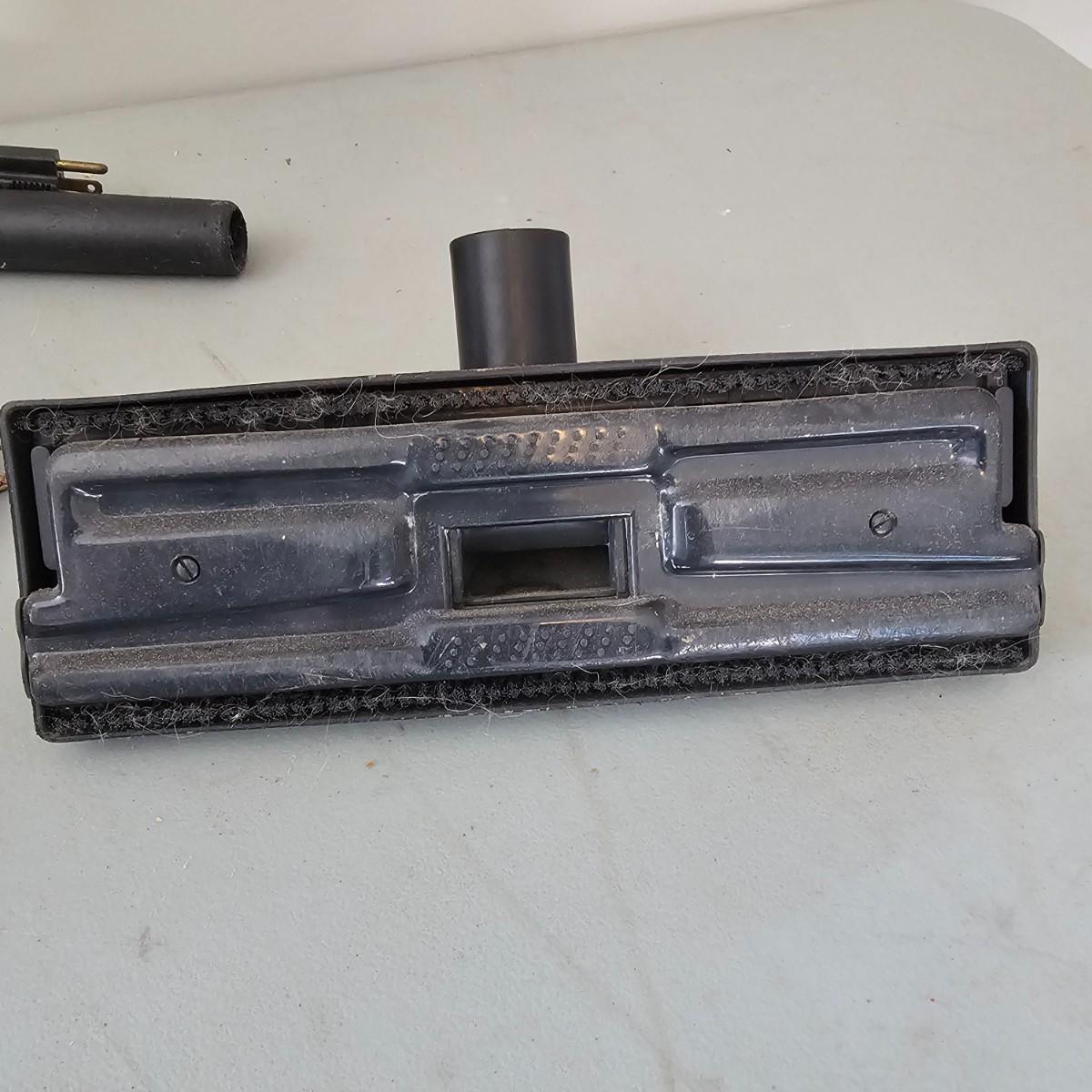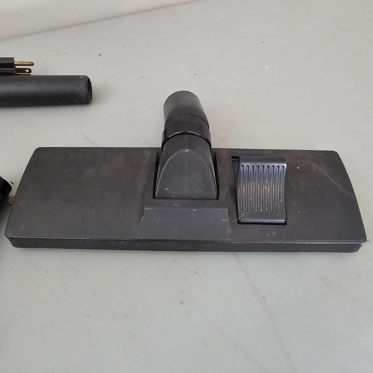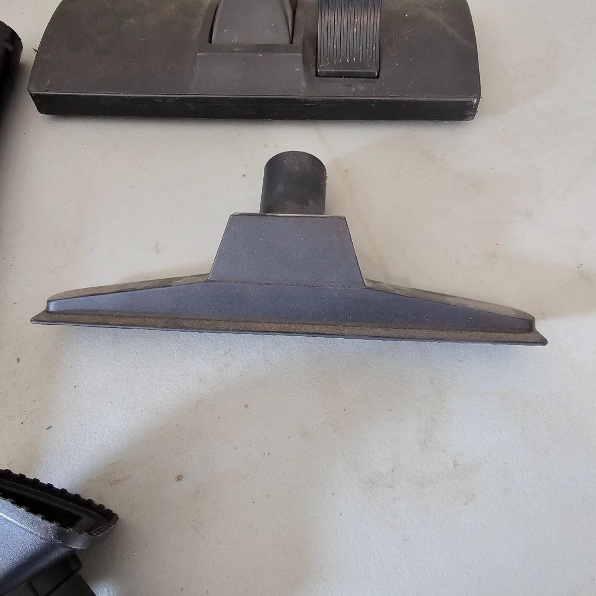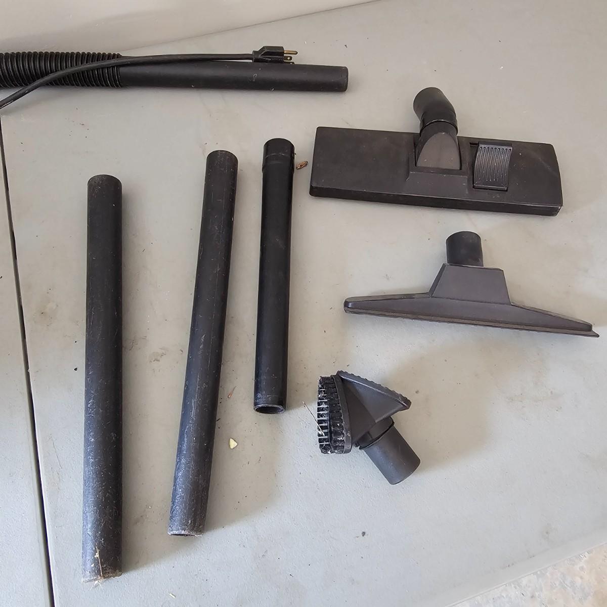 12 gallon capacity, 4.5 peak HP and several extra pieces. Vacuum is on casters for easy movement, has six foot hose, three extra wand pieces ( 2-16" and 1-12"). Two different floor heads and a small upholstery brush. Replacement filters available. Vacuum powered on when plugged in. Note all attachments and hose are inside vacuum. See photos for details. Local pickup only.