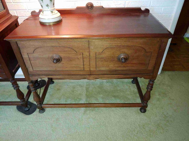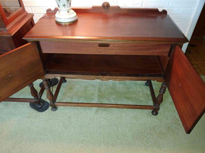 Please Don't Let The Sales Tax etc Scare You Away; There Is None; Can Pay In Cash. Short mahogany cabinet 42” wide x 19” deep x 32” tall. Final Estate Sale! Everything Must Go! Rock Bottom Prices!