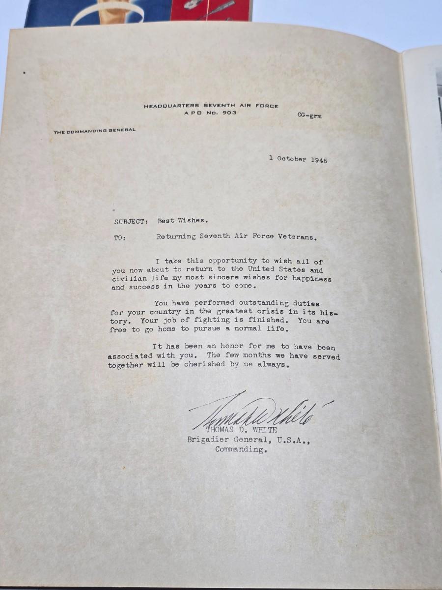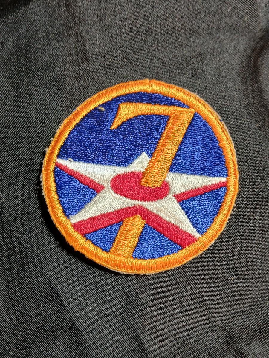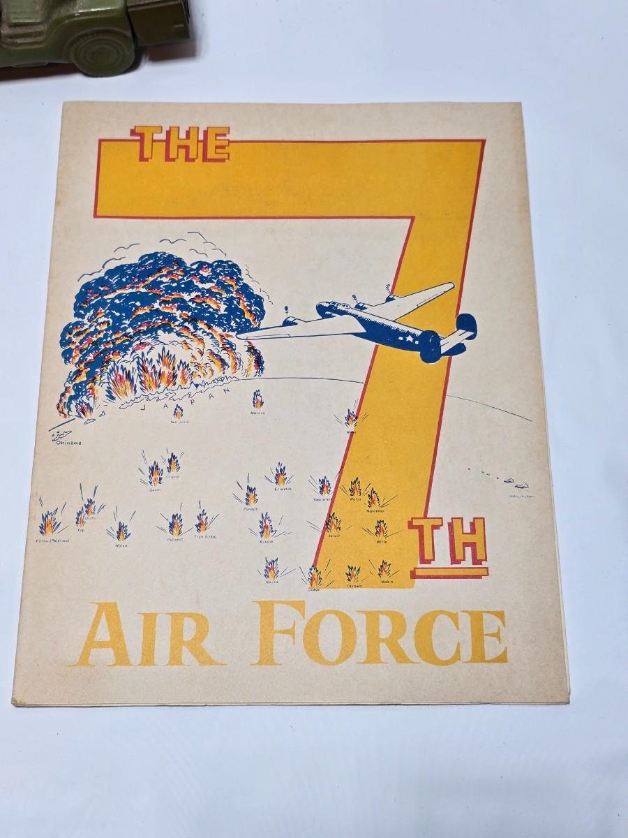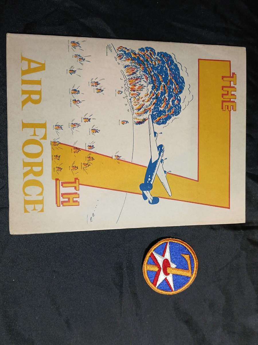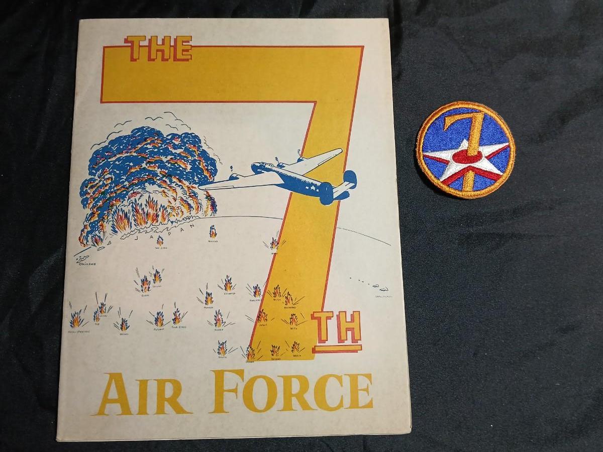 Short "The 7th Air Force" softcover WWII Unit History Book and an Original WW2 Vintage 7th Air force patch