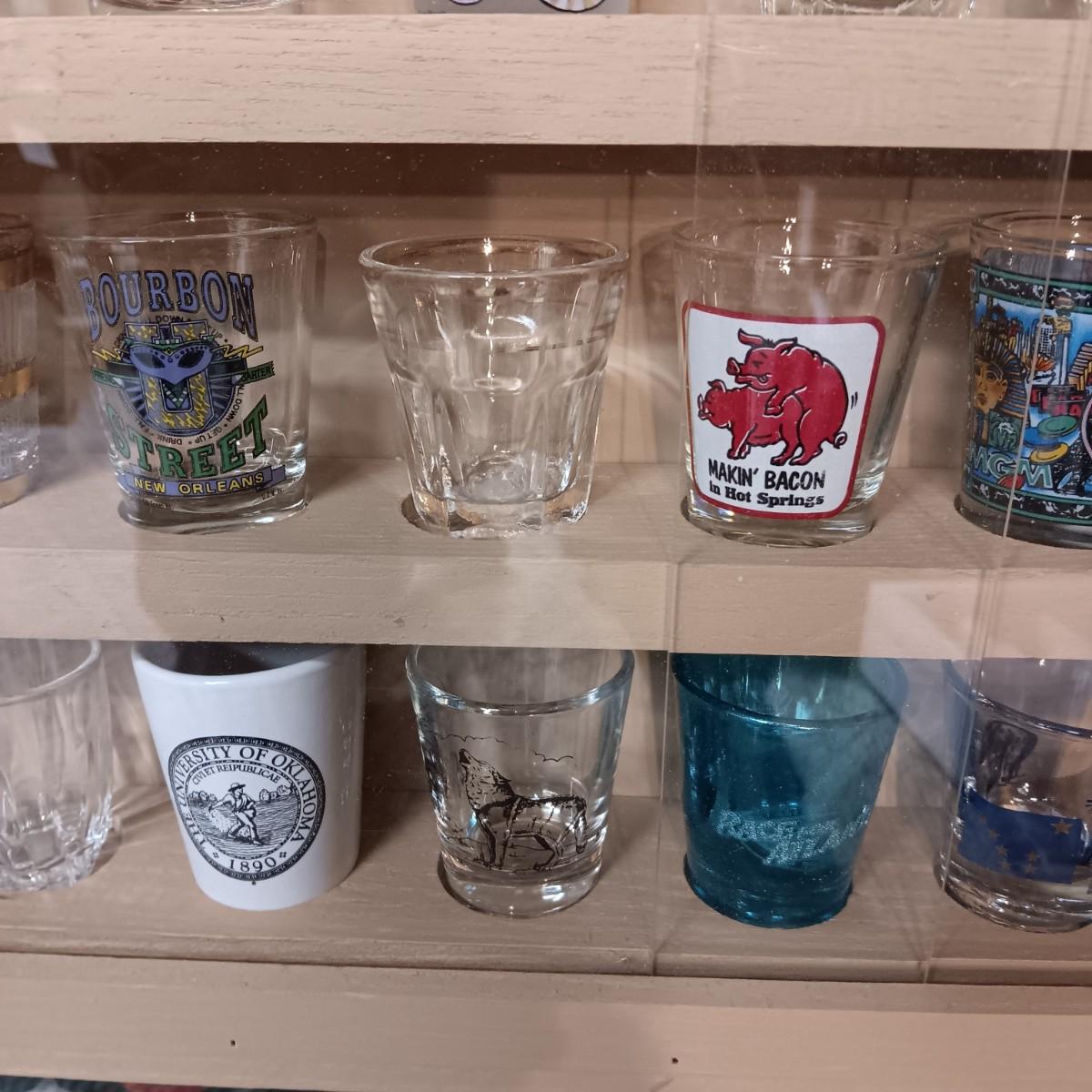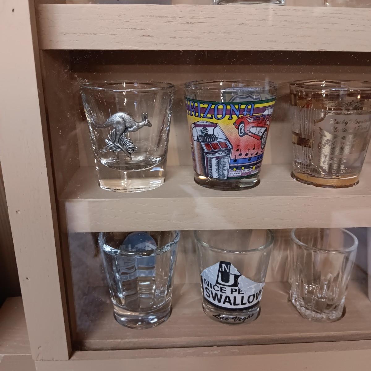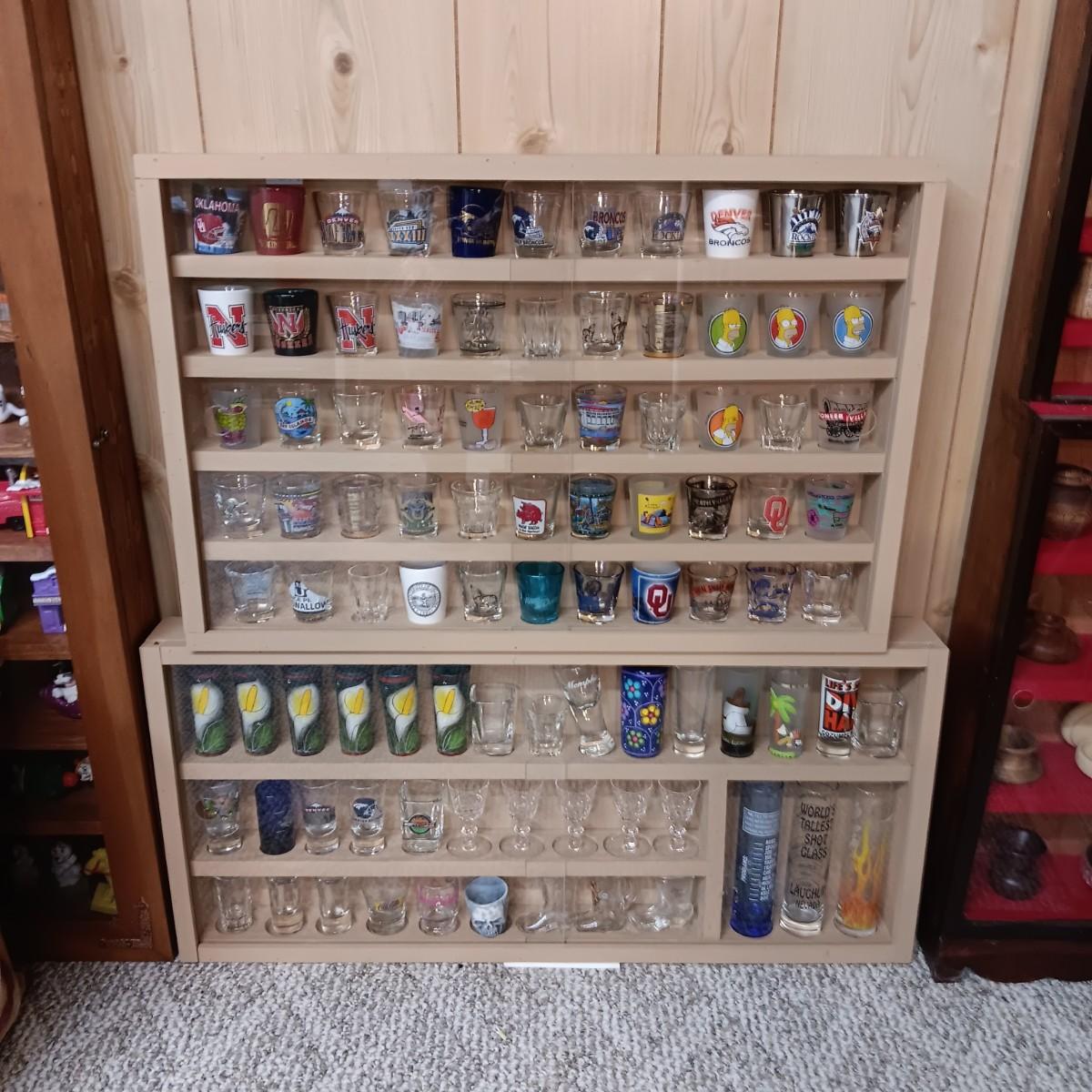SHOT GLASS COLLECTION IN HANDMADE DISPLAY CASE
