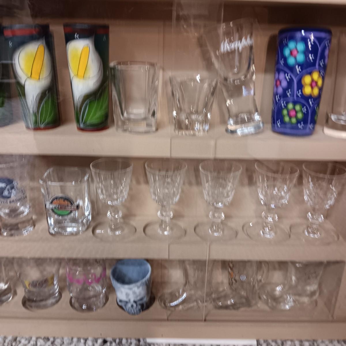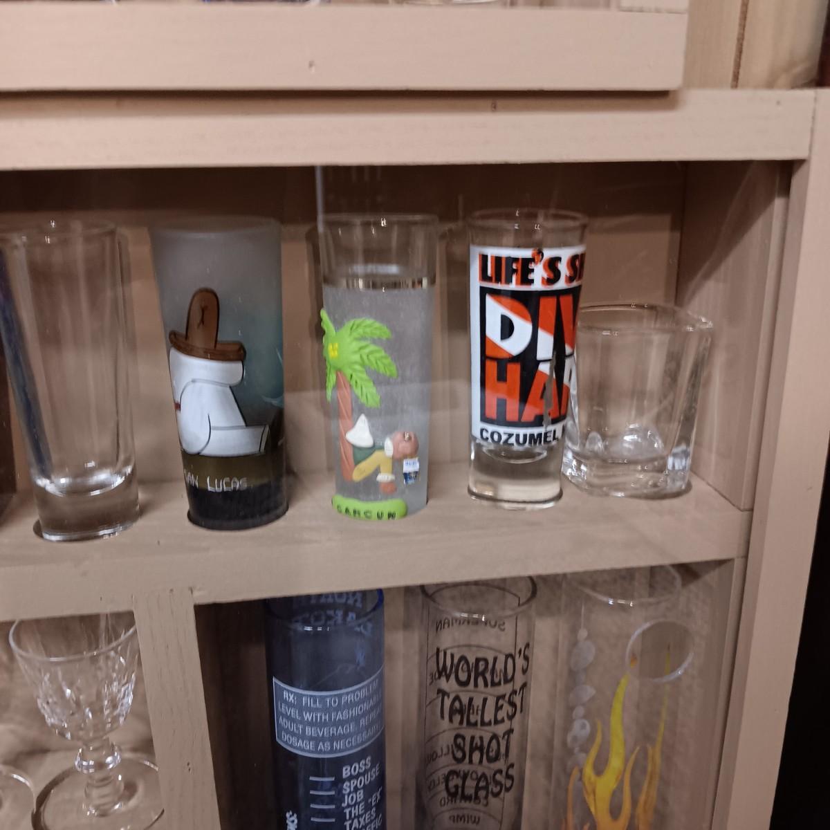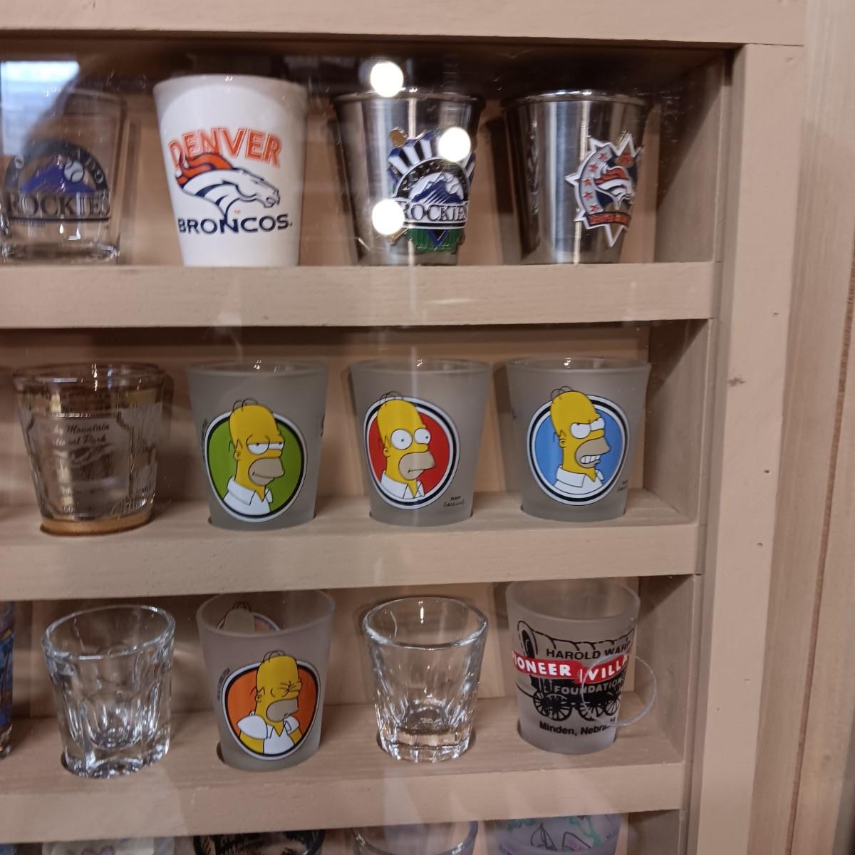 SHOT GLASS COLLECTION IN HANDMADE DISPLAY CASE