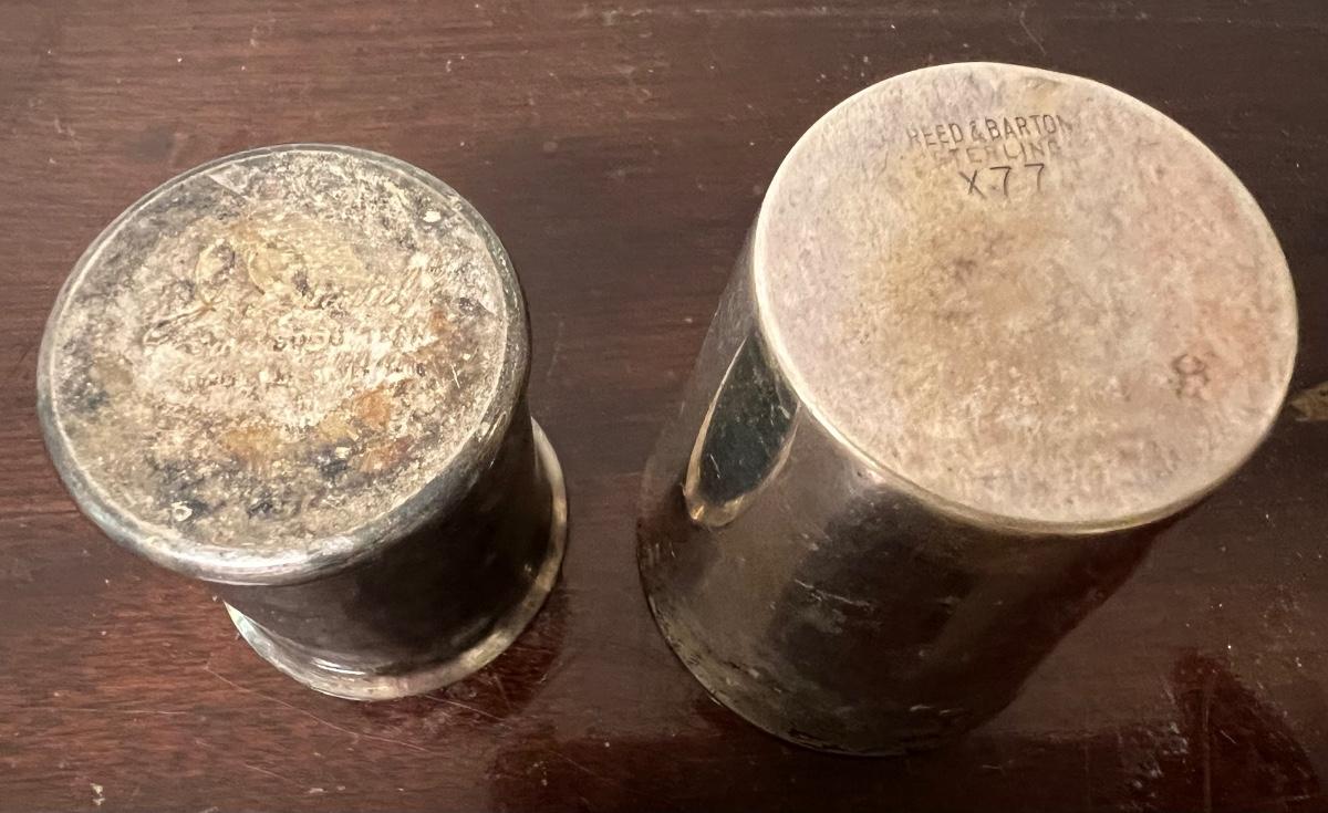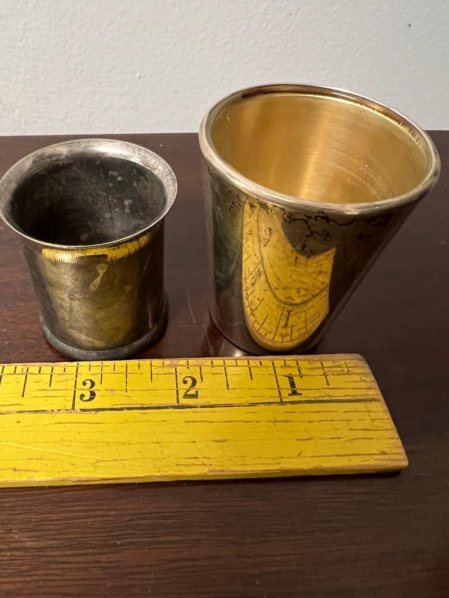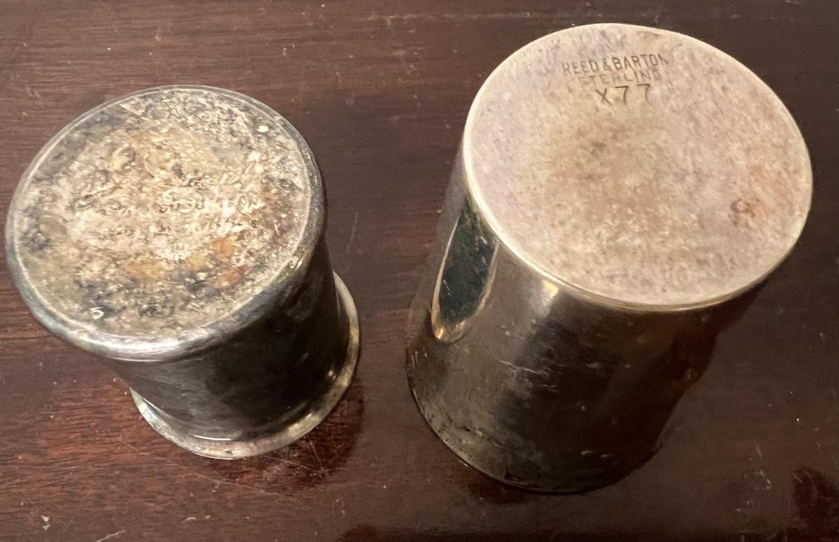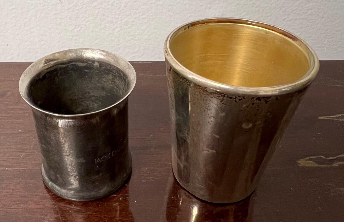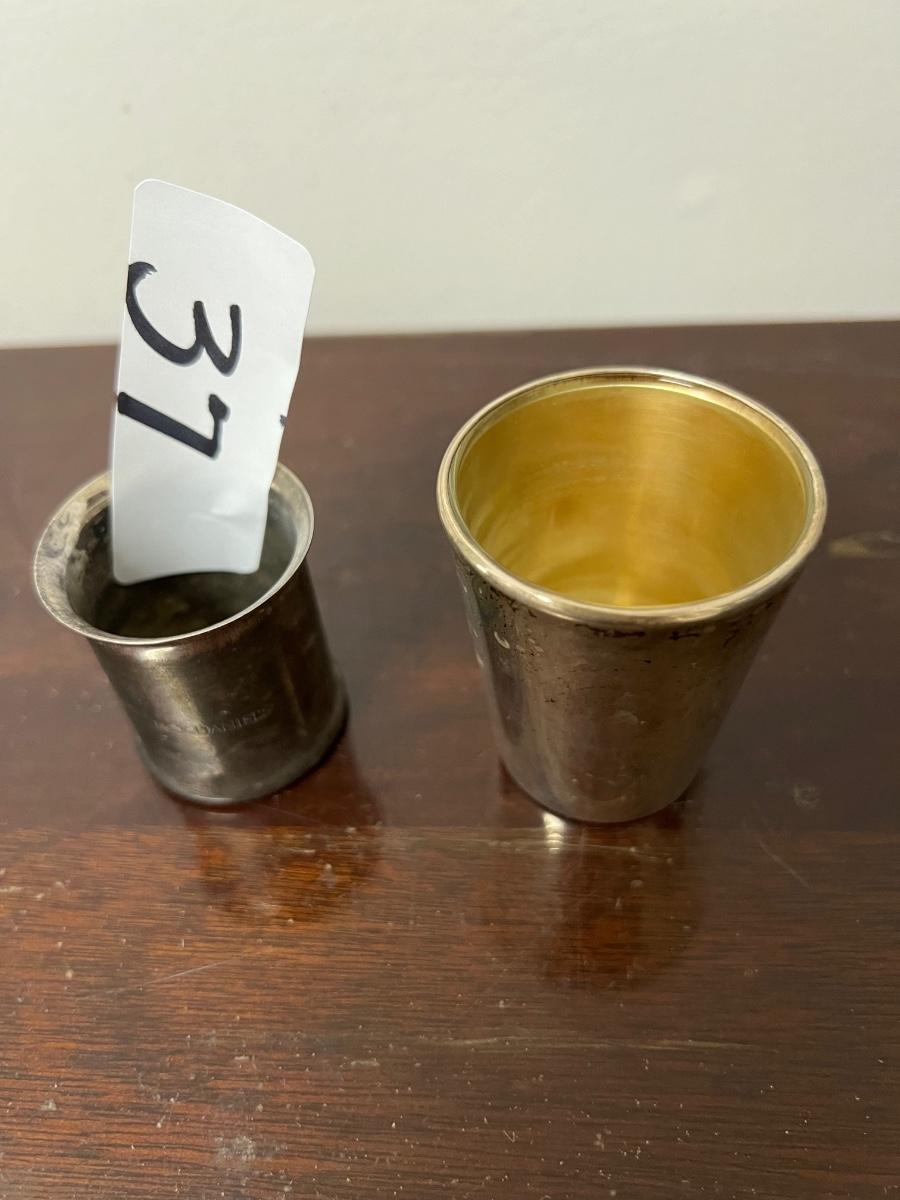 shot glass lot, reed & barton sterling shot glass, jack daniels silver plate shot glass, as pictured