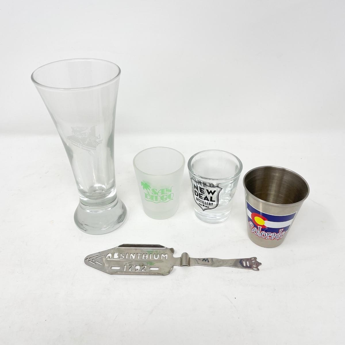 SHOT GLASSES & ABSINTHE SPOON LOT