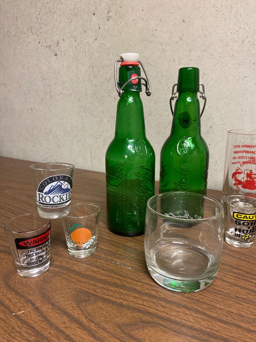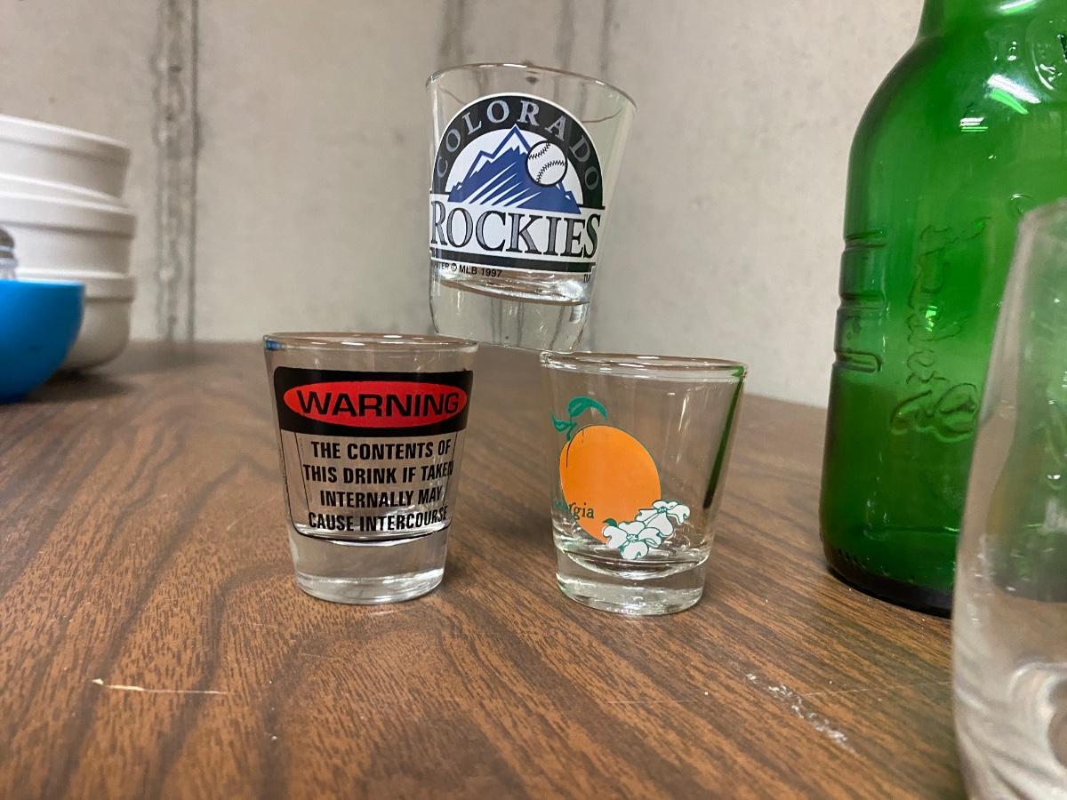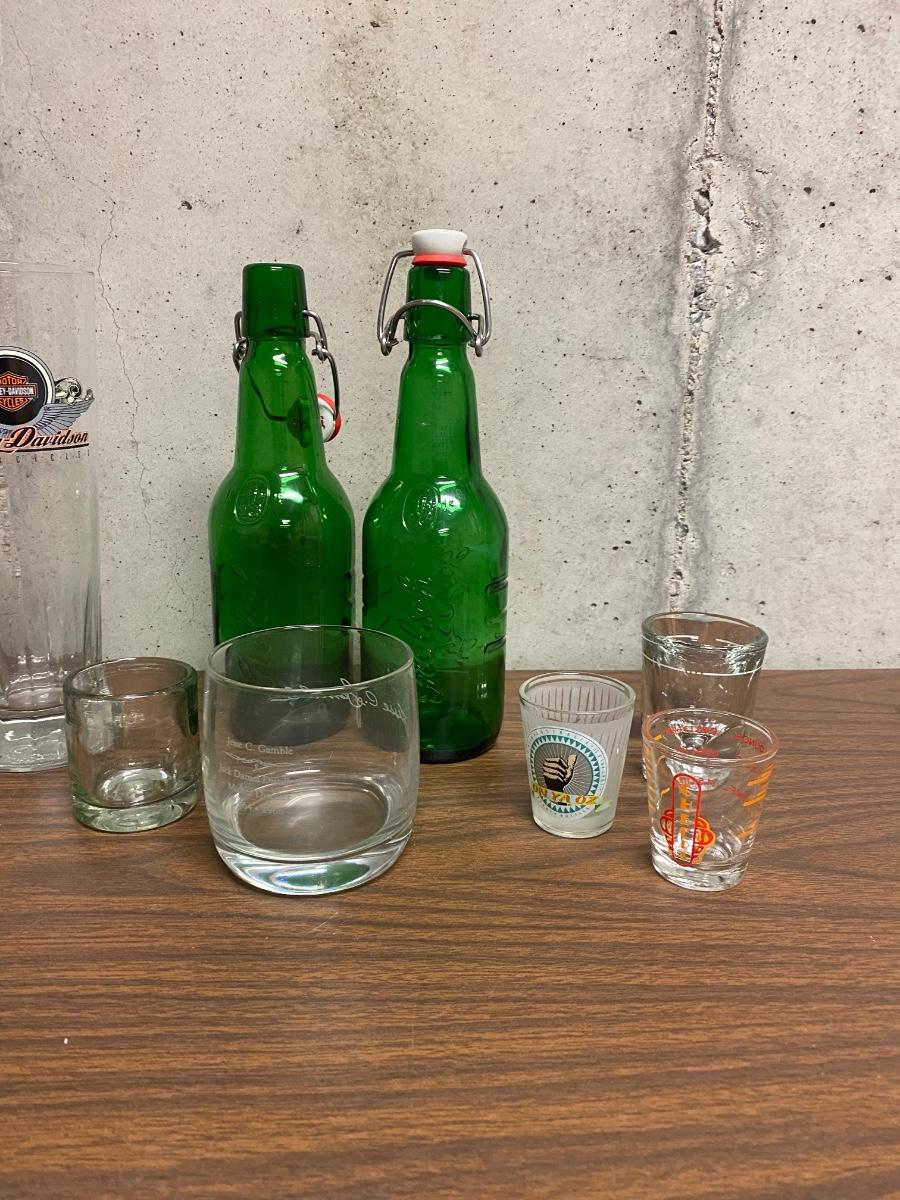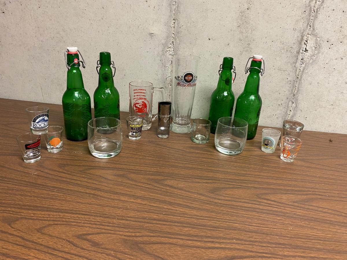 SHOT GLASSES, HARLEY DAVIDSON COLLECTABLE GLASS, JACK DANIEL’S GLASSES AND MORE