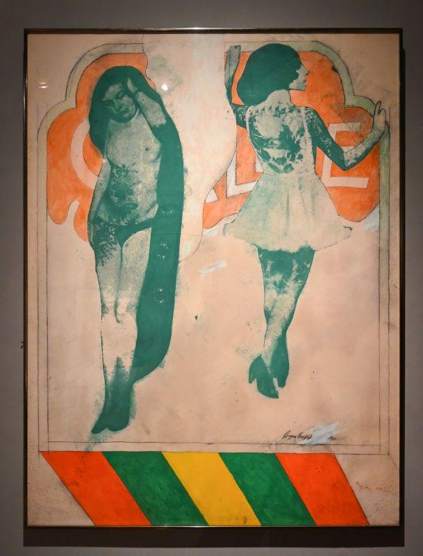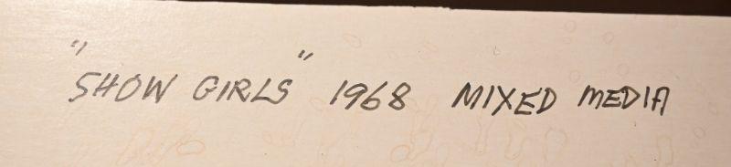 "Show Girls" (1968) by artist Byron Burford (American, 1920-2011). Mixed media. Approx. 38" x 50". Please note, listed dimensions includes frame.