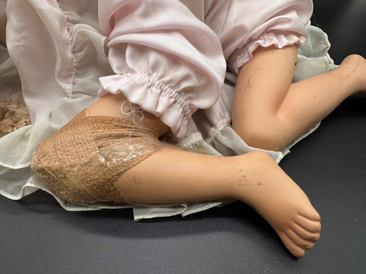 See pictures for knee bandage where the original knee seems to be missing. It’s unnoticeable on display, but the bandage had not removed. It feels like the knee is gone even though can’t see it.