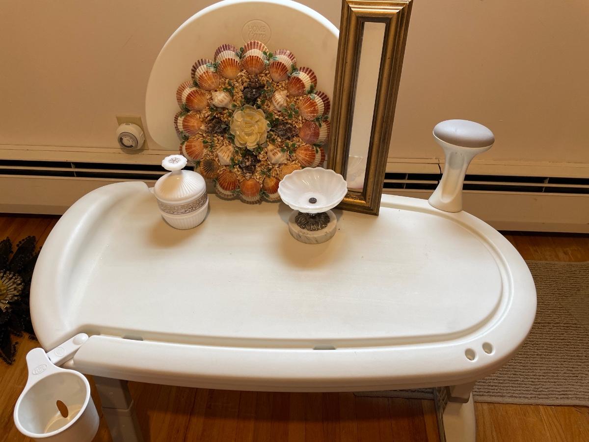 Wide shower chair with decor