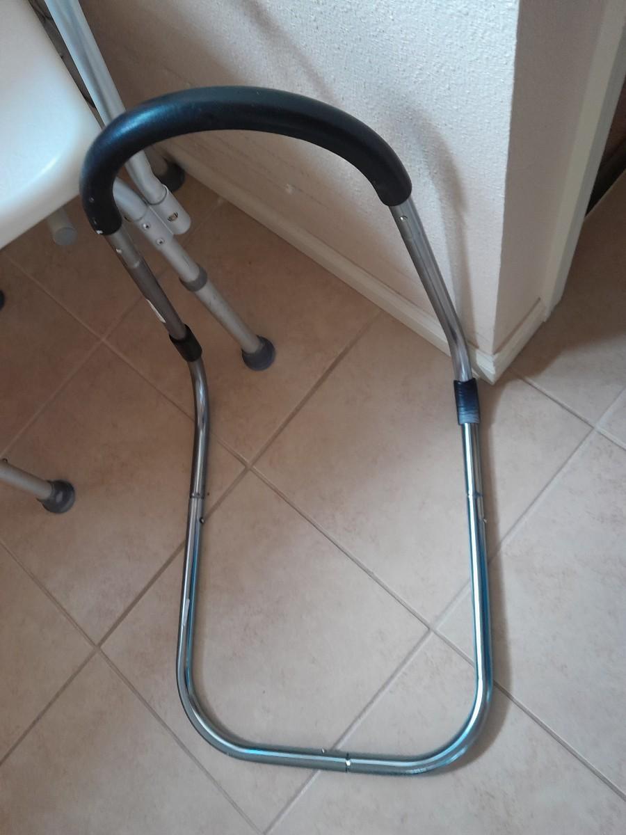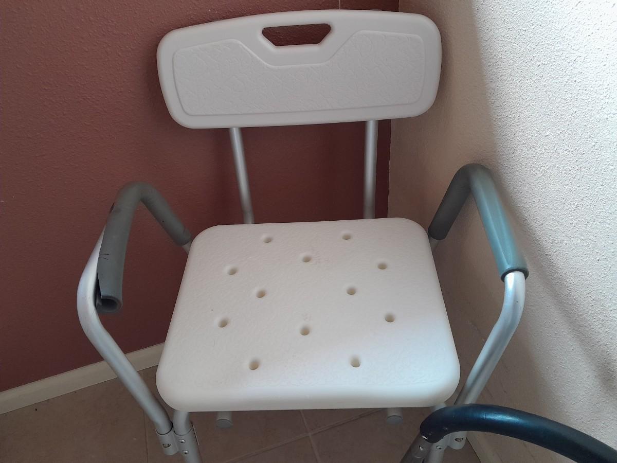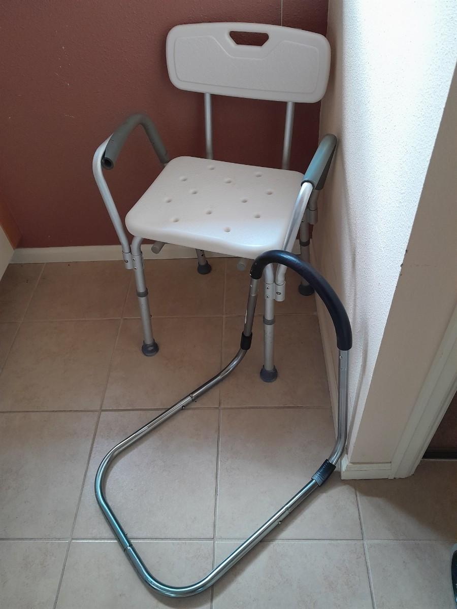 SHOWER CHAIR WITH ADJUSTABLE LEGS, AND A LIFT ASSIST BAR