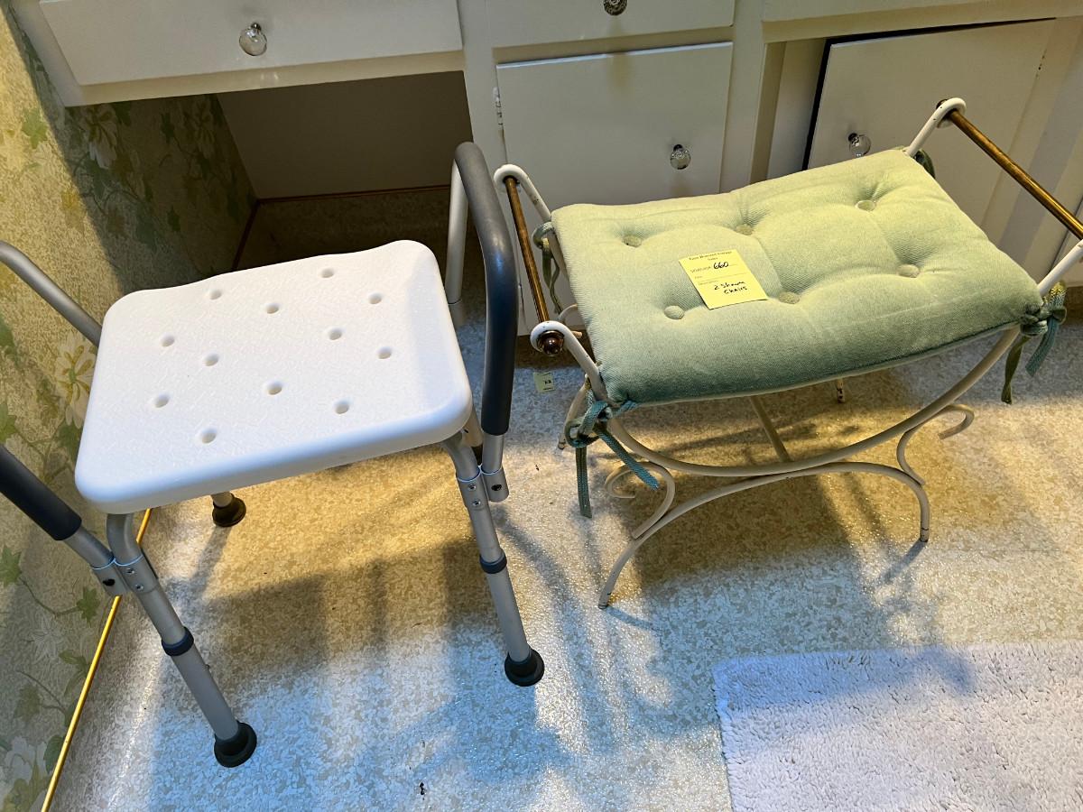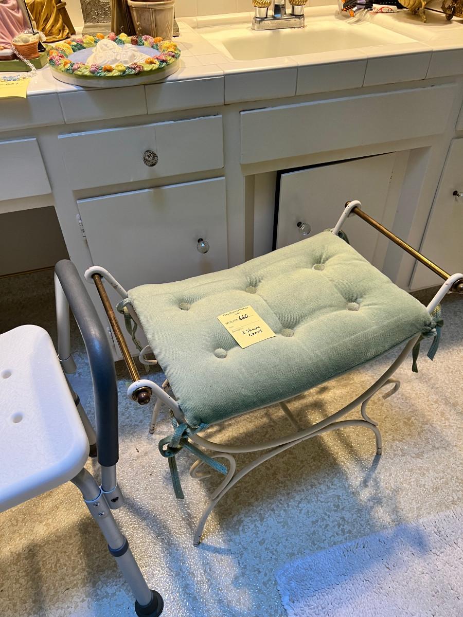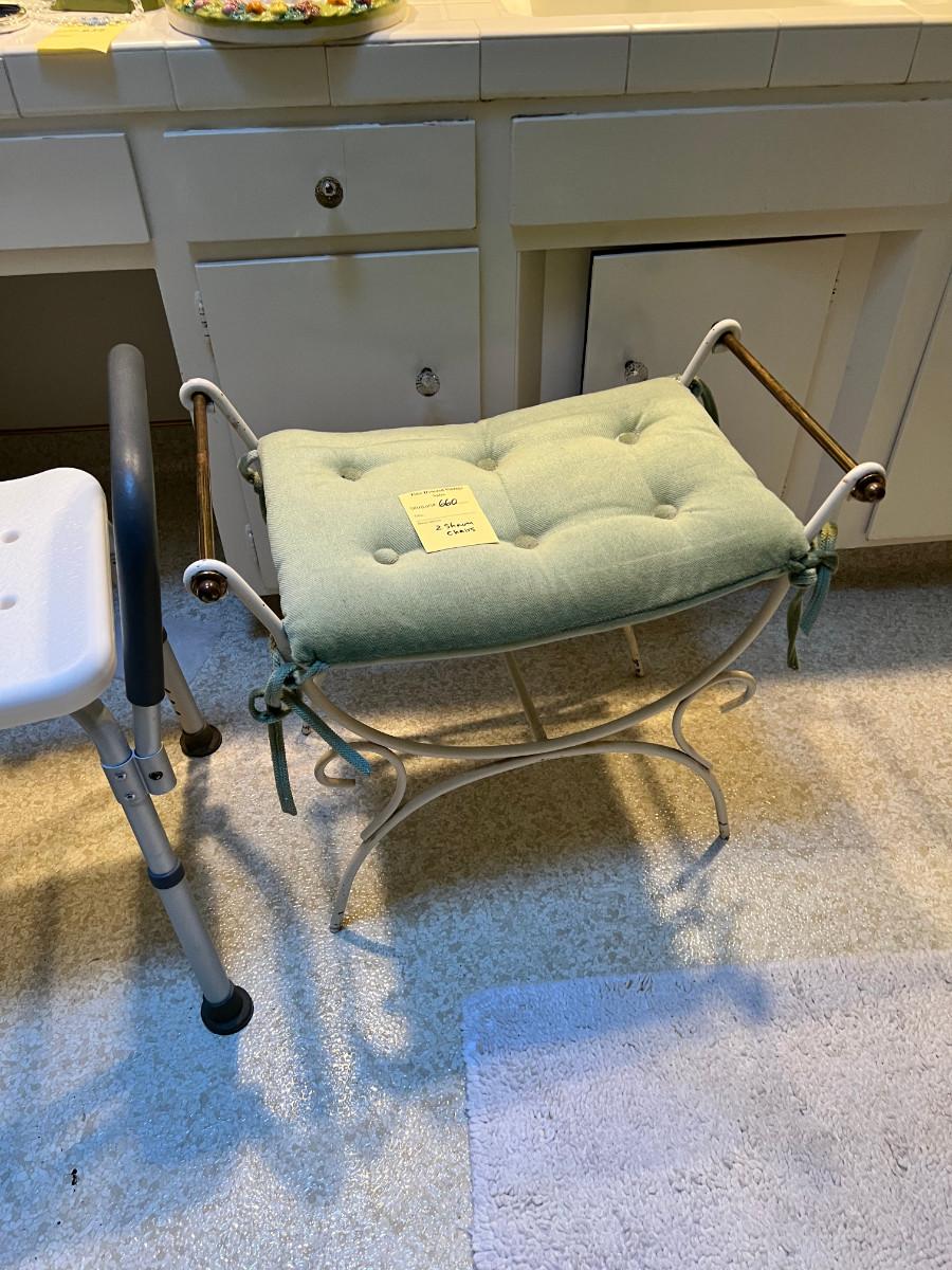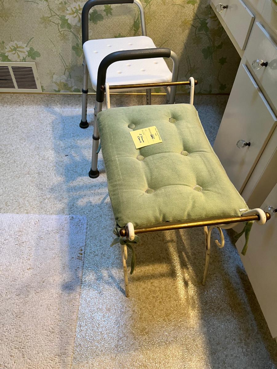 Shower Chair and metal vanity stool