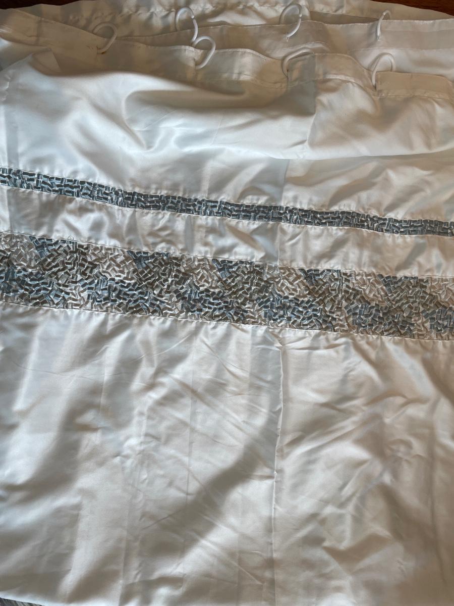 Shower curtain needs a wash & has a stain but is a really pretty pattern