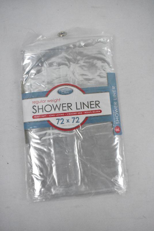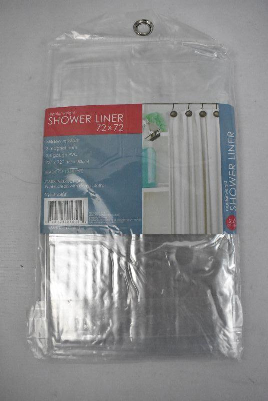 Shower Curtain Lot: Fabric Shower Curtain, Shower Liner & 12 Curtain Hooks