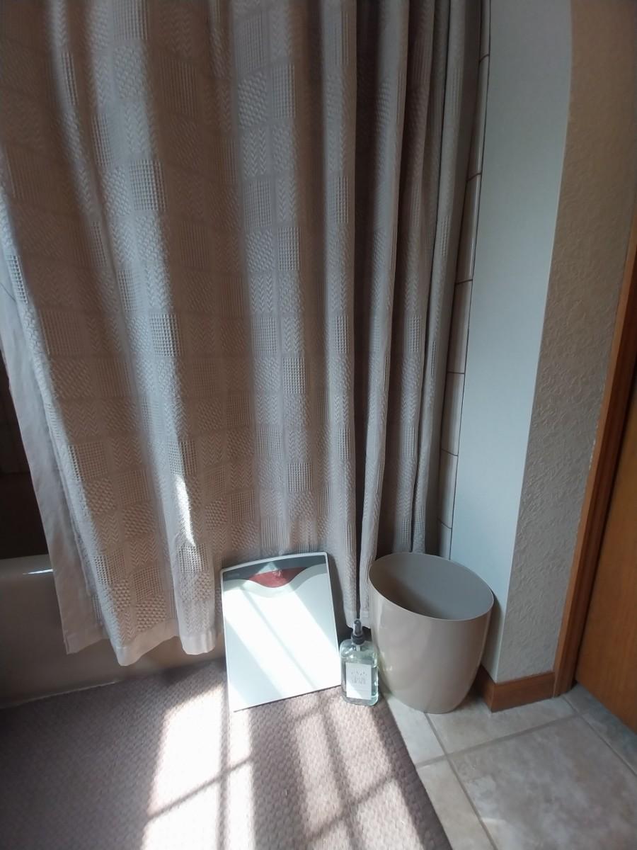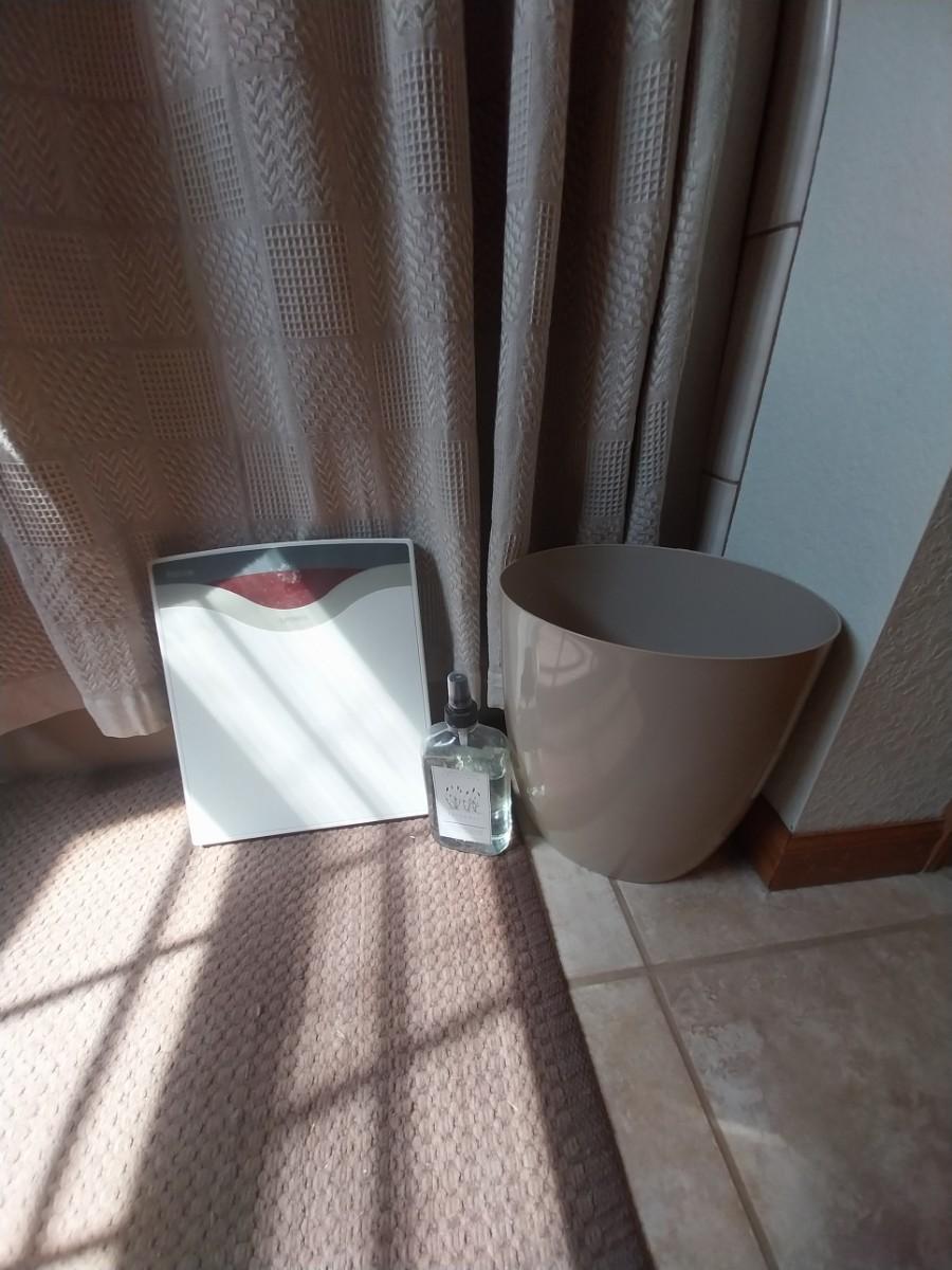 SHOWER CURTAIN-WEIGHT SCALE- TRASHCAN