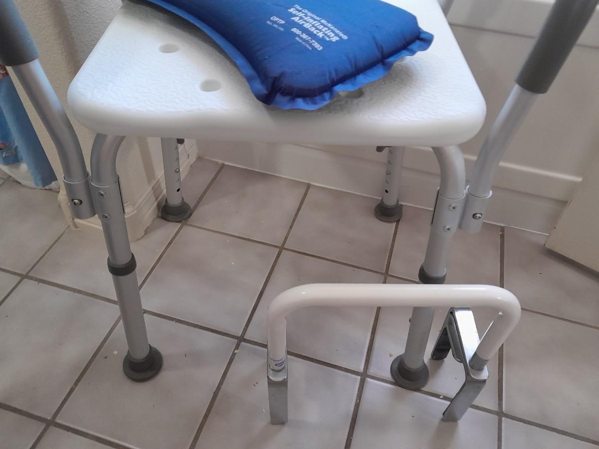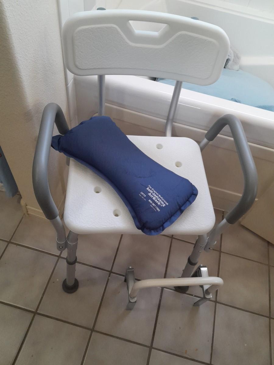 SHOWER SEAT, BATHTUB GRIP AND A SELF INFLATING AIR BACK