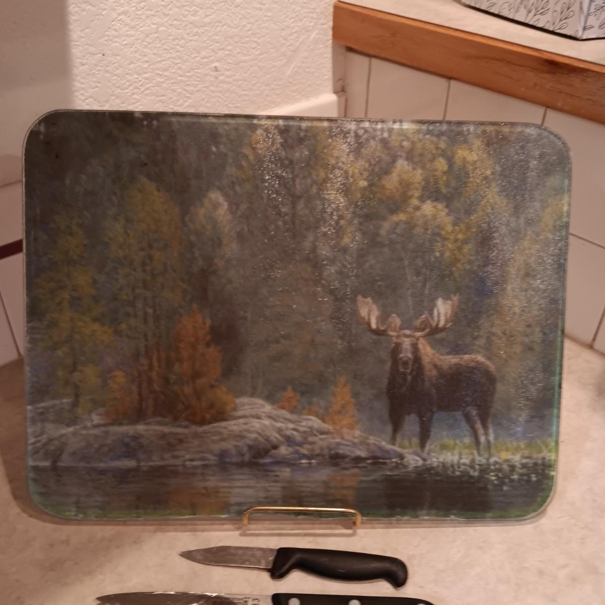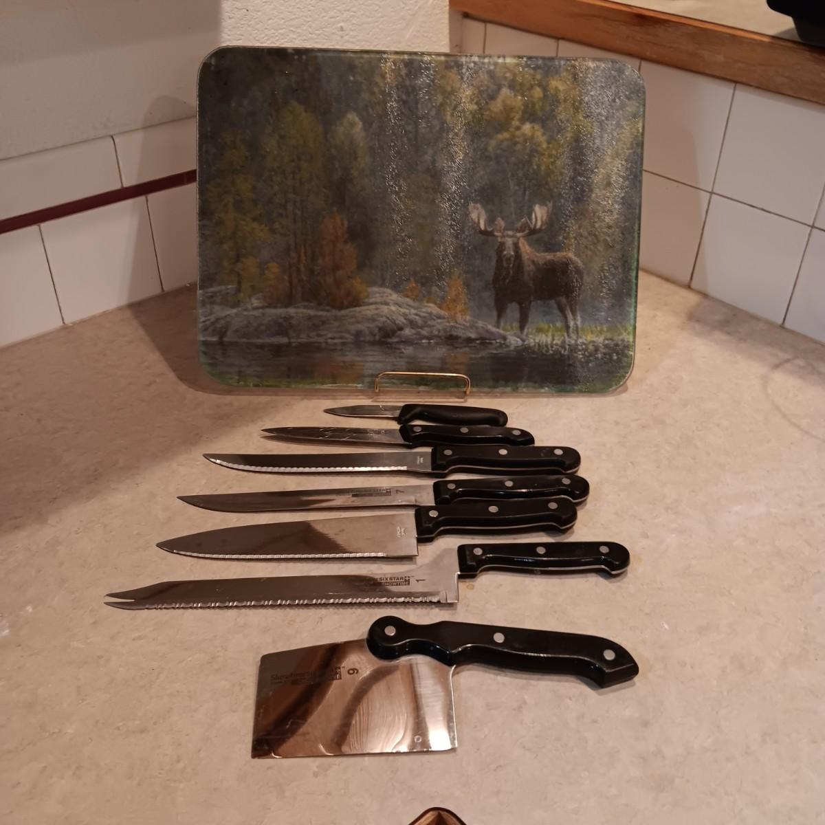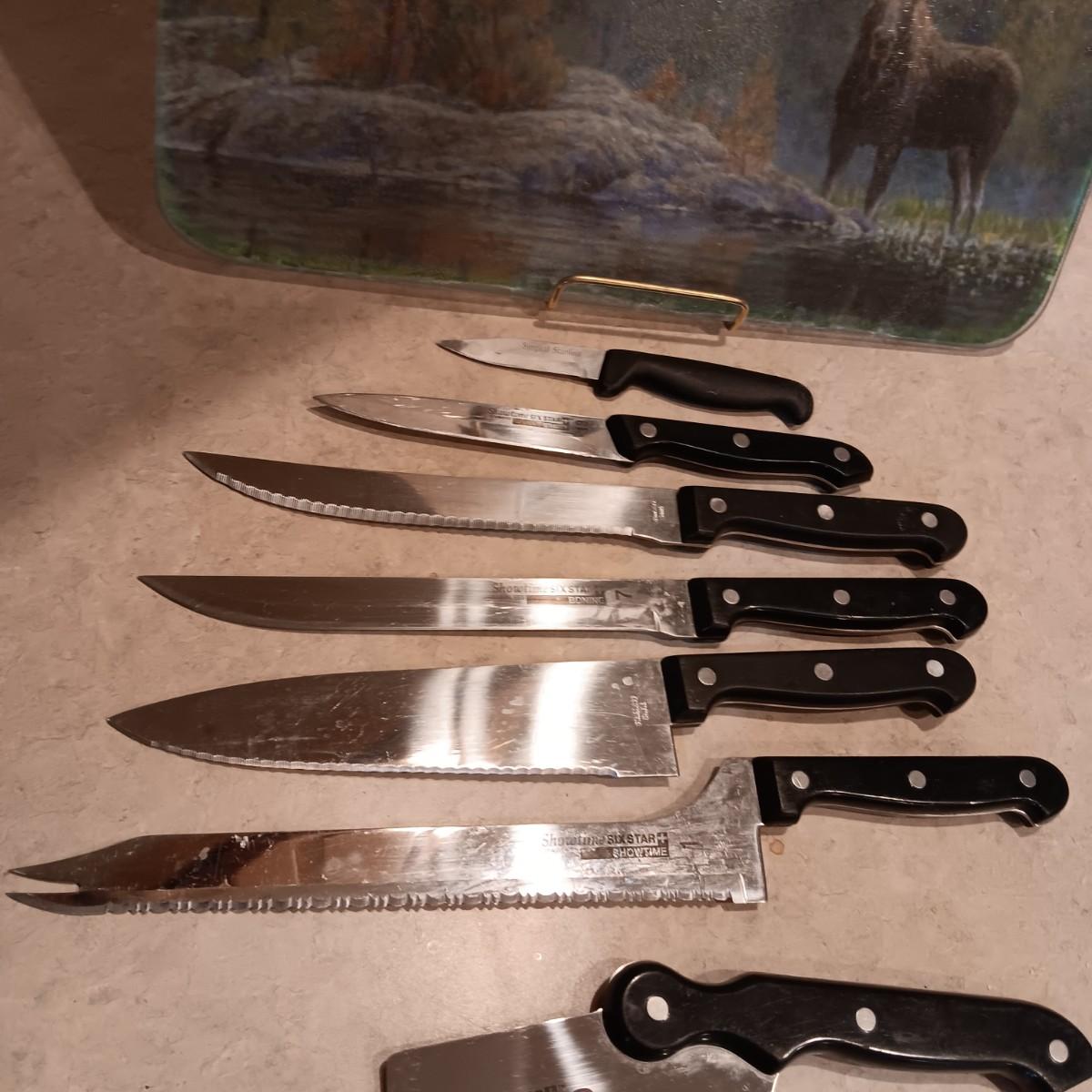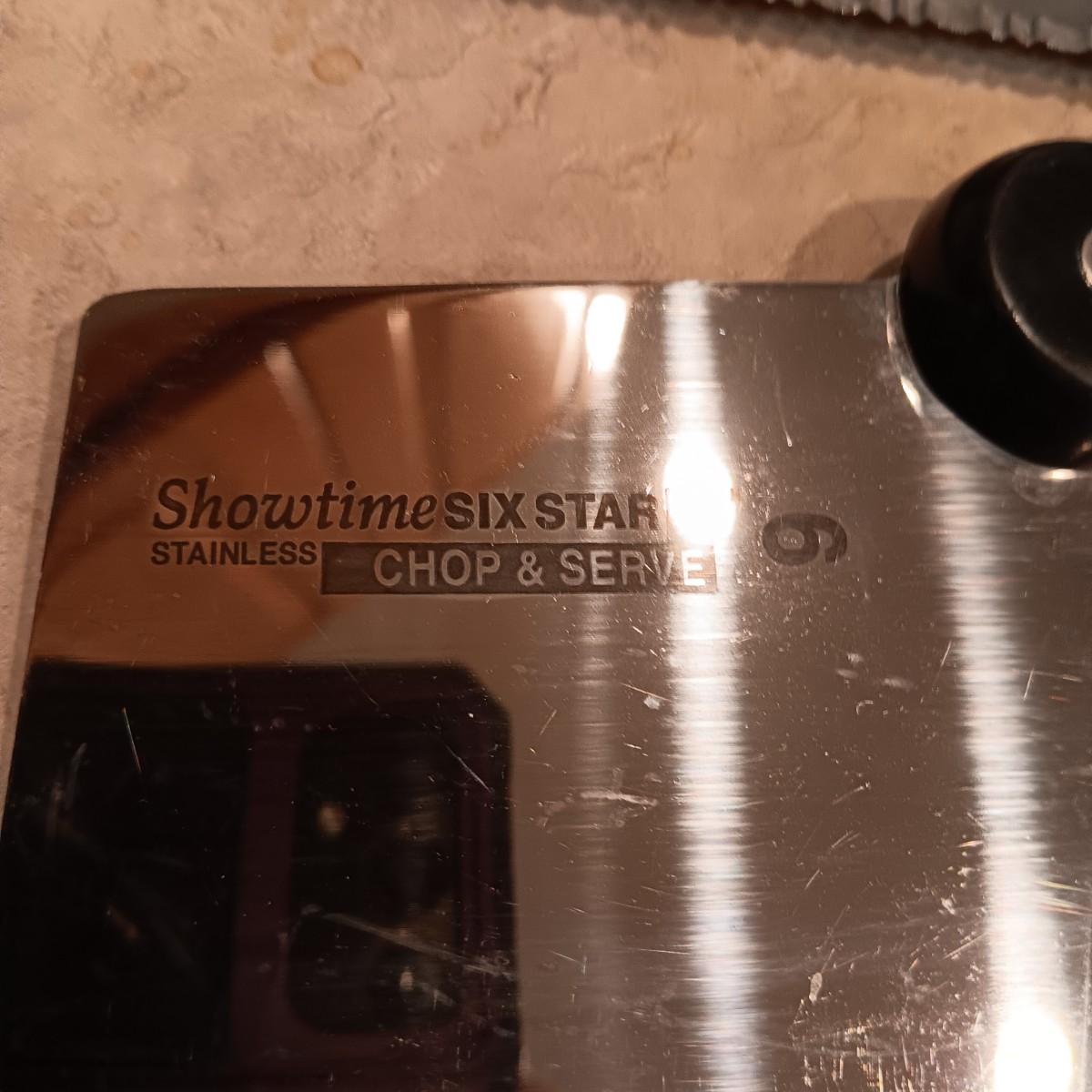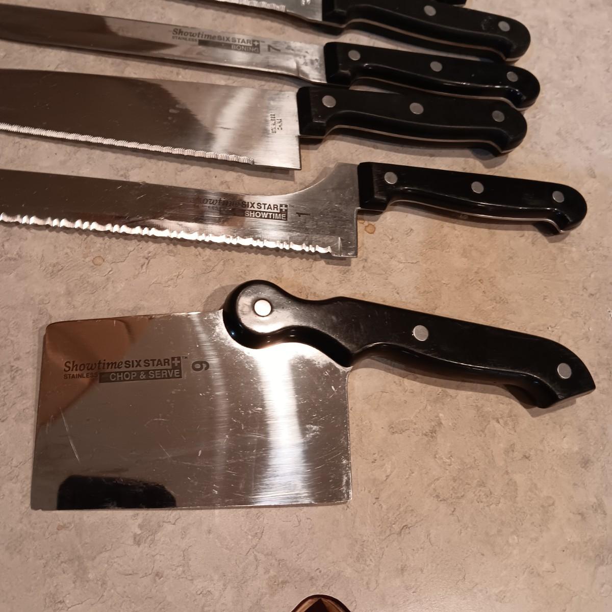 SHOWTIME SIX STAR CUTLERY AND A GLASS CUTTING BOARD