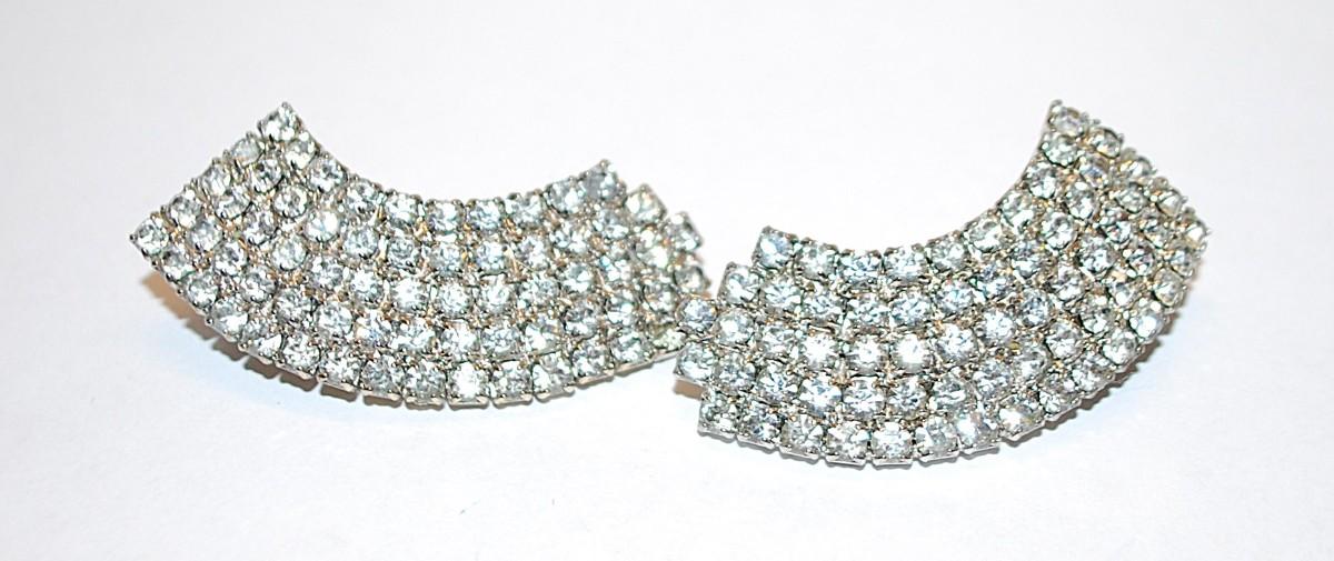 Showy Half Circle 5 Rows Bejeweled EARRINGS Set with a SPRING SNAP Clasp
