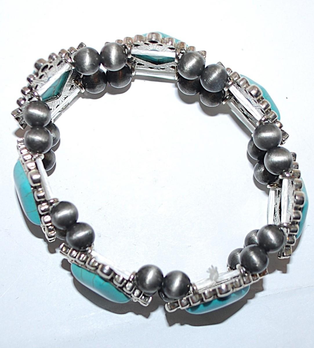 Showy Solid ELASTIC "Crackled" JADE STONES BRACELET (2½" Opening) with Silver Tone Globe Accents