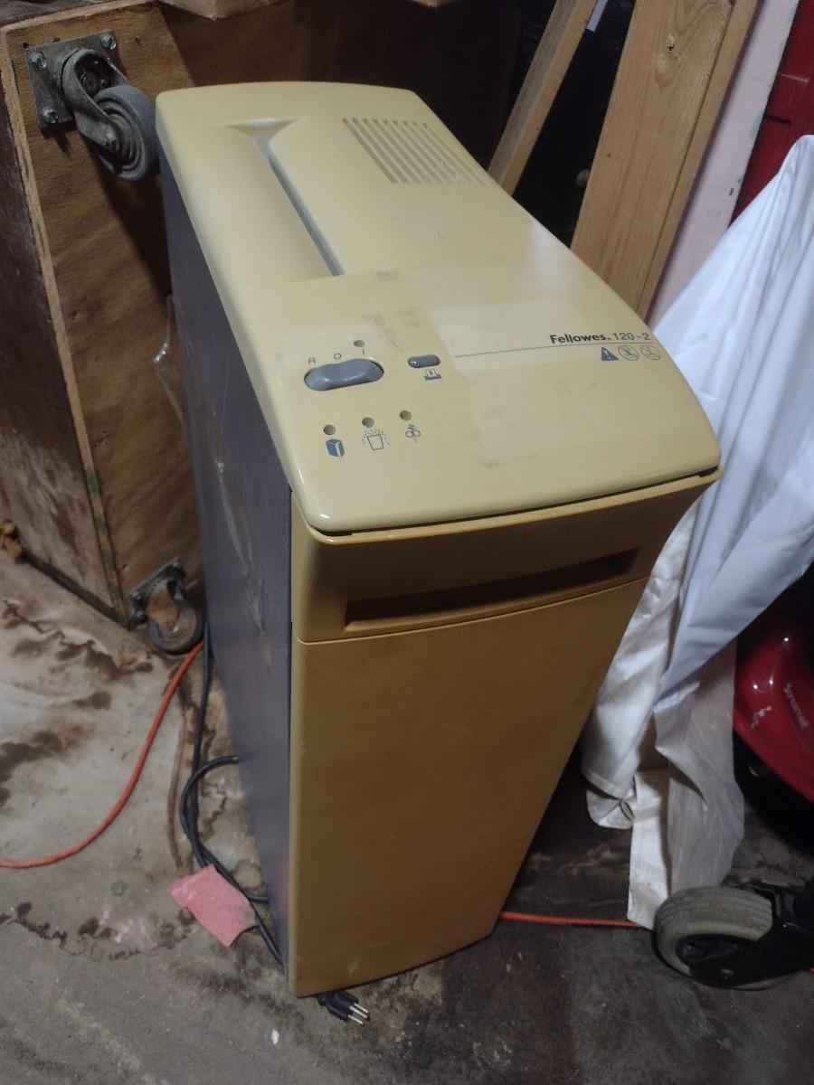 Fellowes Large Capacity Office Paper Shredder. Bin door is loose as shown.