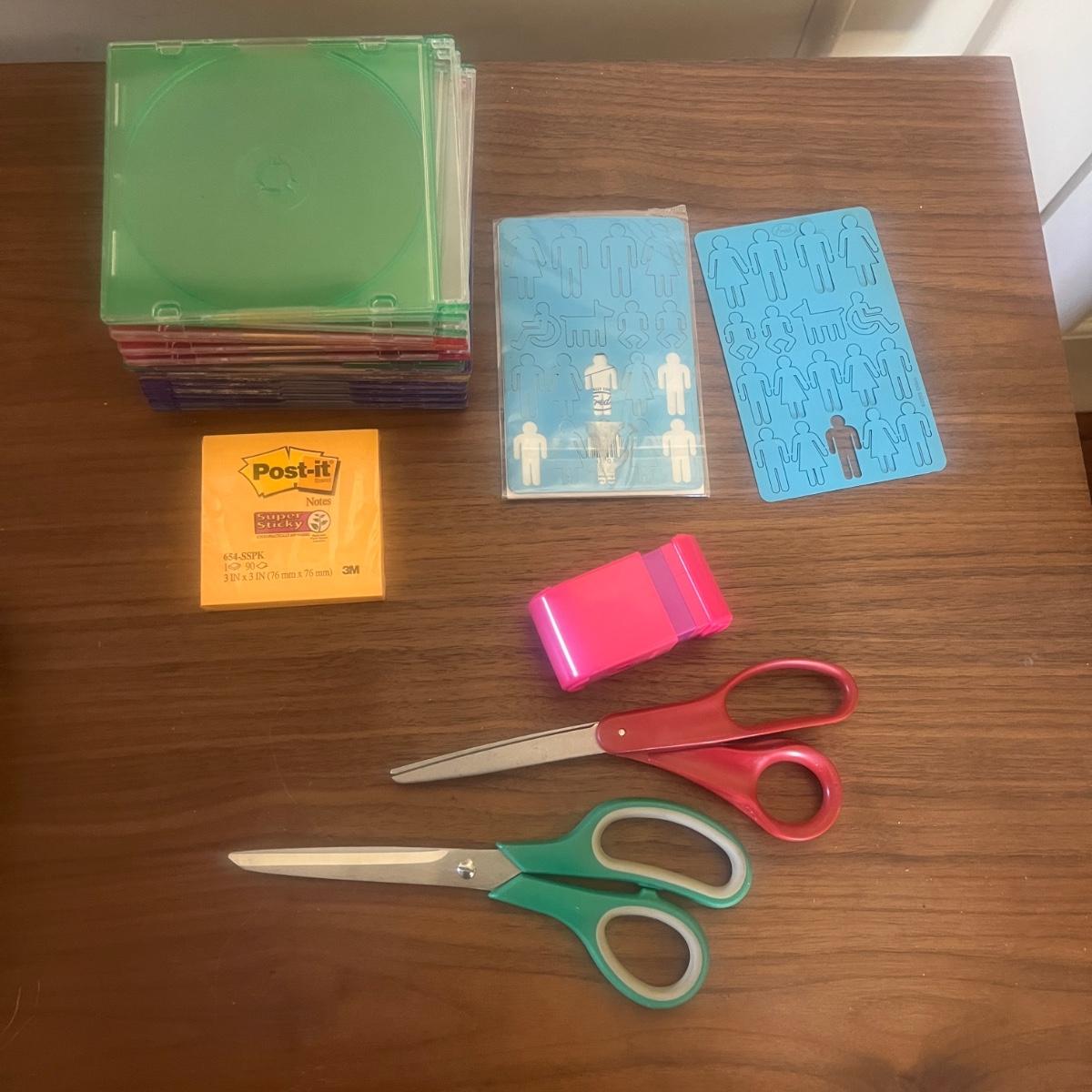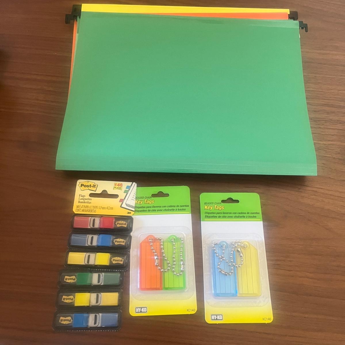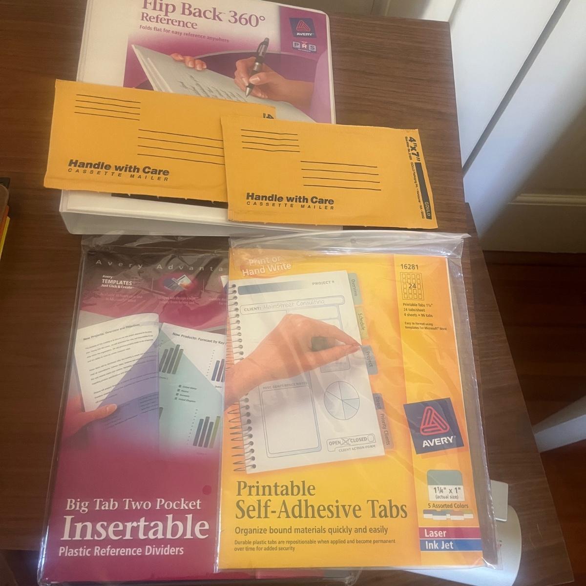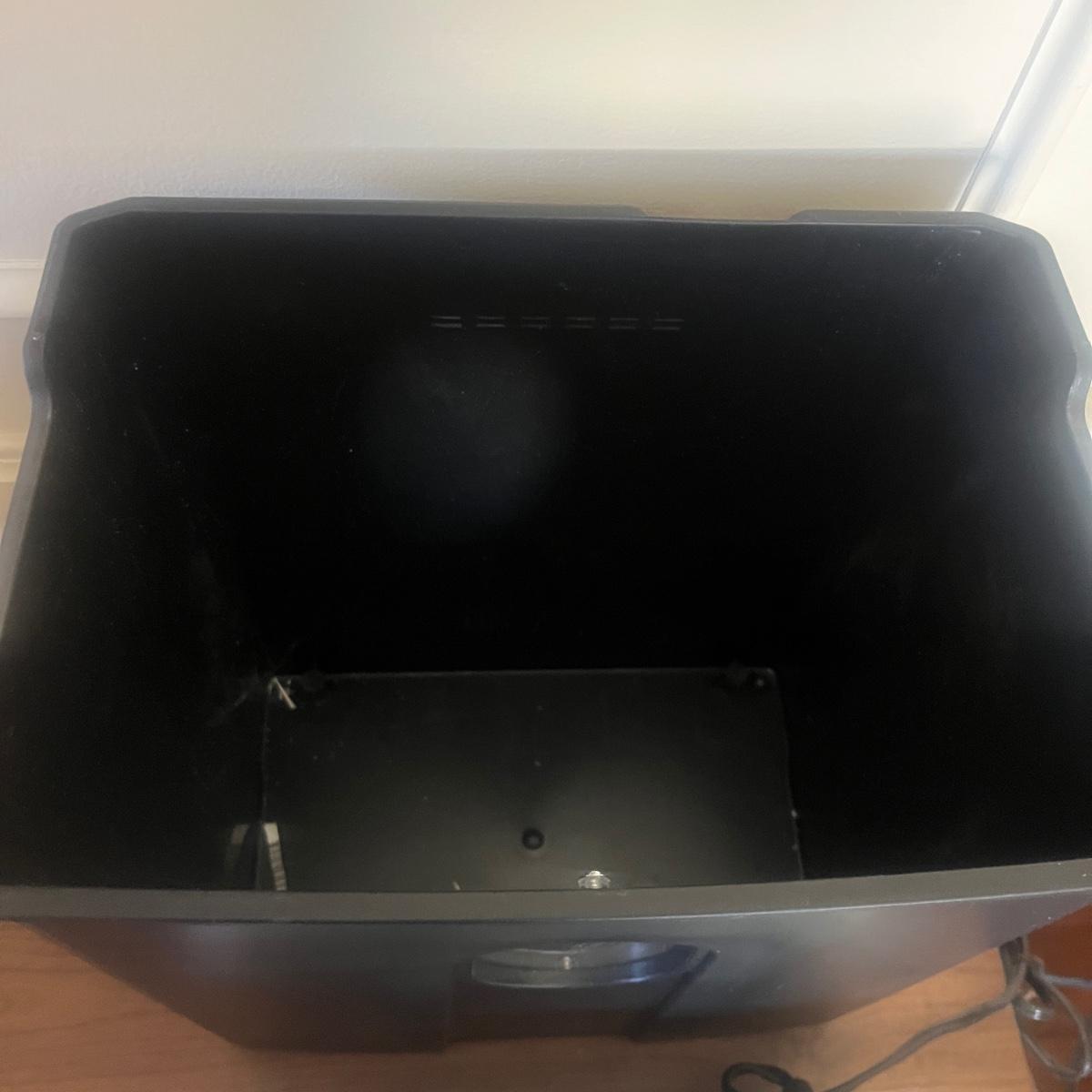 Lot includes an Amazon paper shredder, gooseneck light, envelopes, folders, staplers, clipboards, paper clips and more. Shredder measures 12” x 19” x 16”.