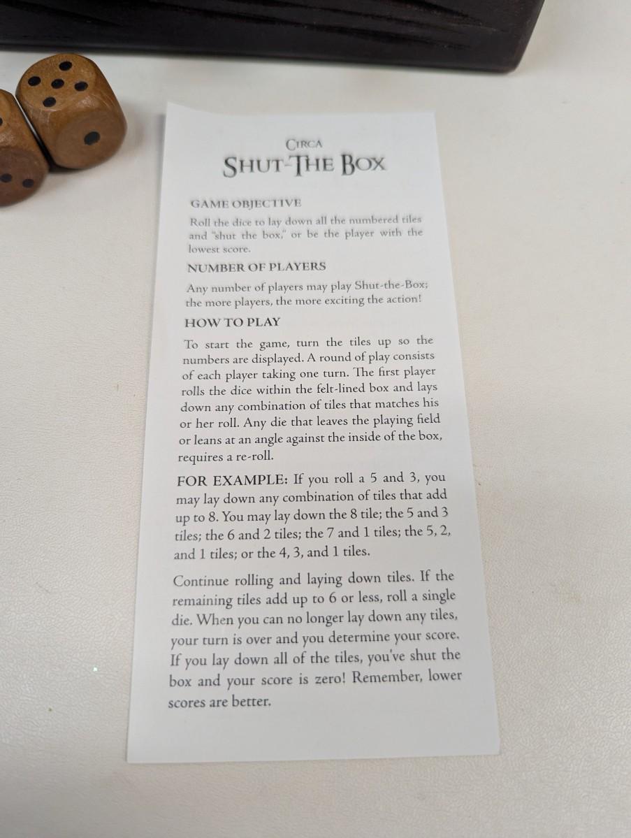 Shut-the-Box Game Sabada Dice Numbers Wooden