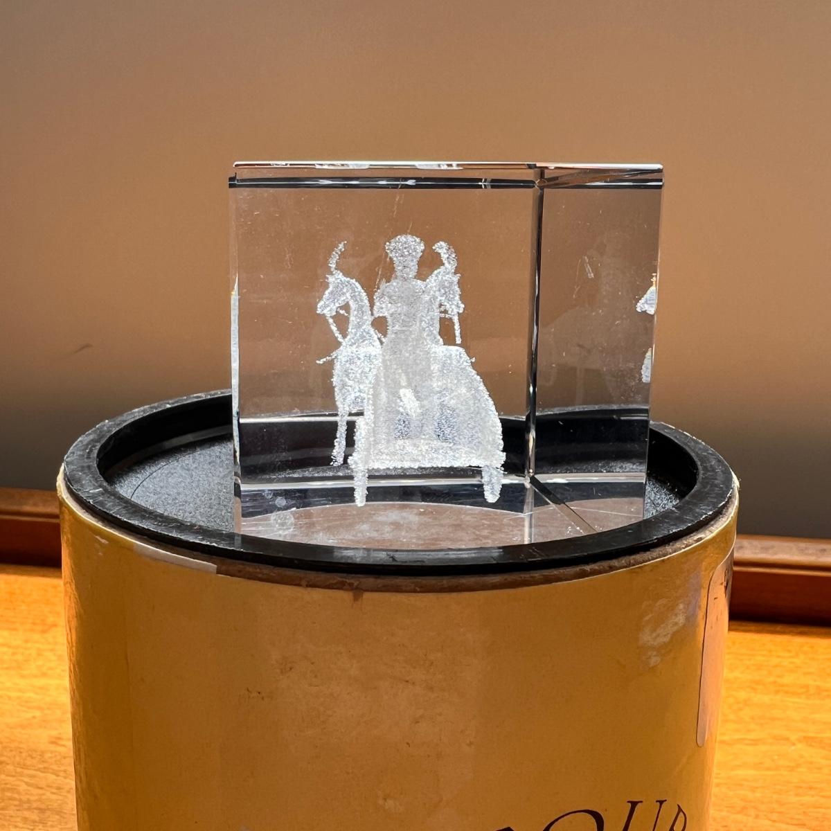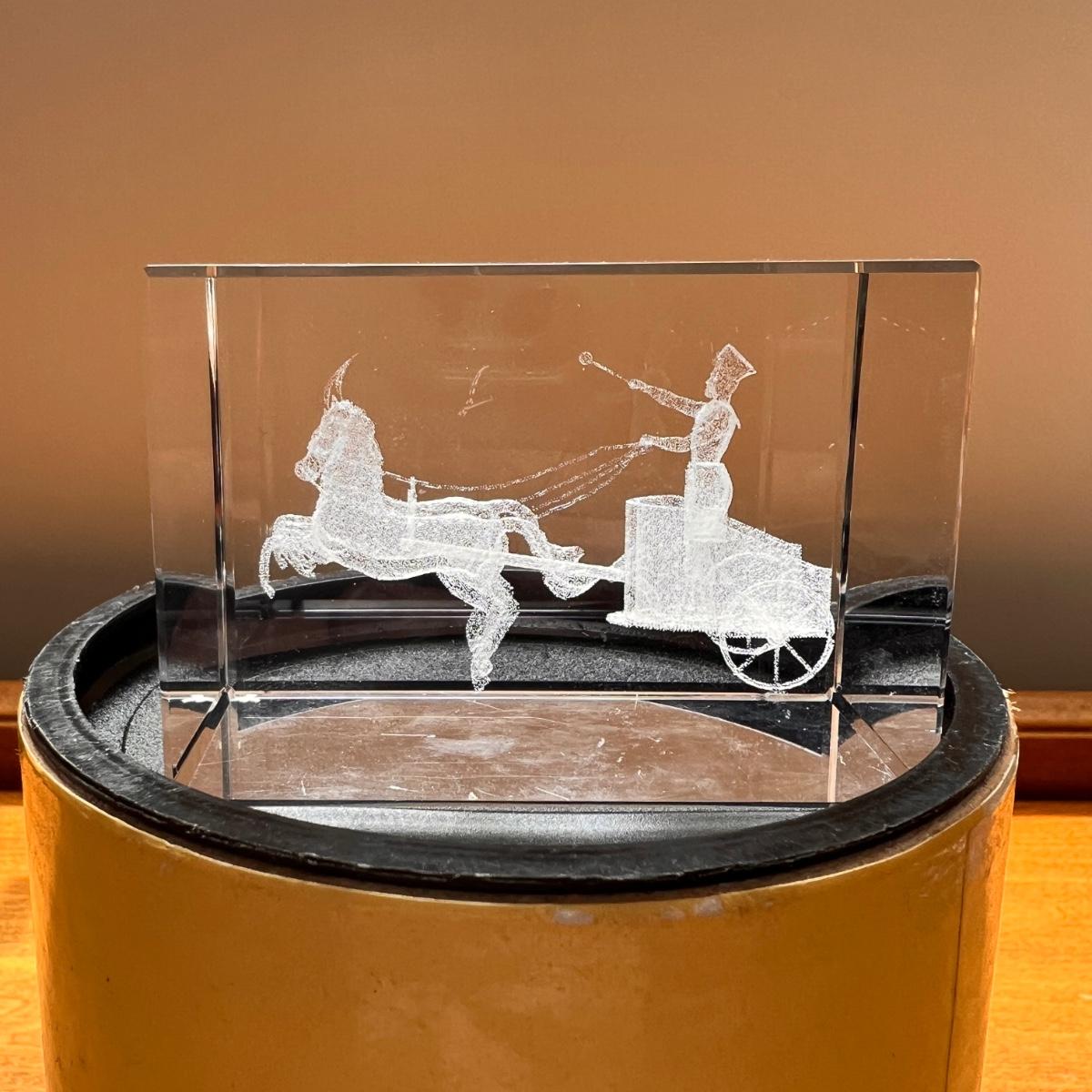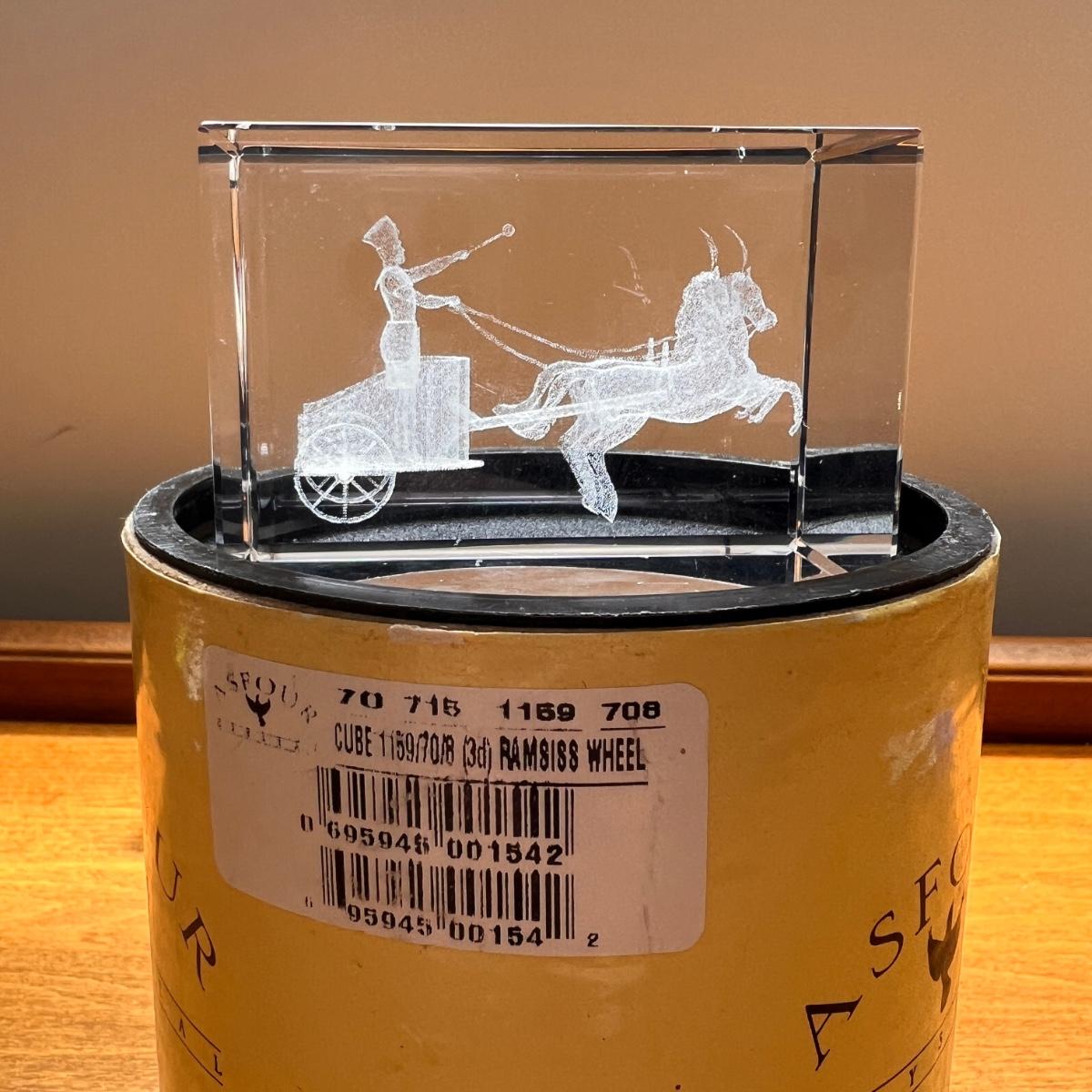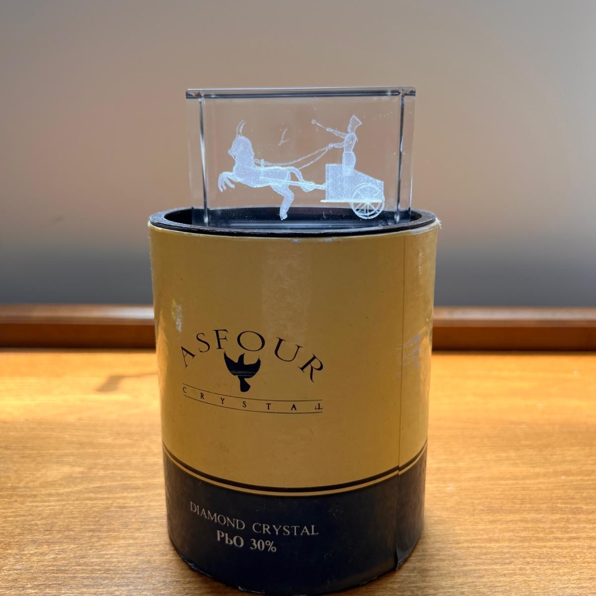 Asfour laser 3d crystal of a soldier and horse drawn cart. Excellent condition. Stored in original packaging.